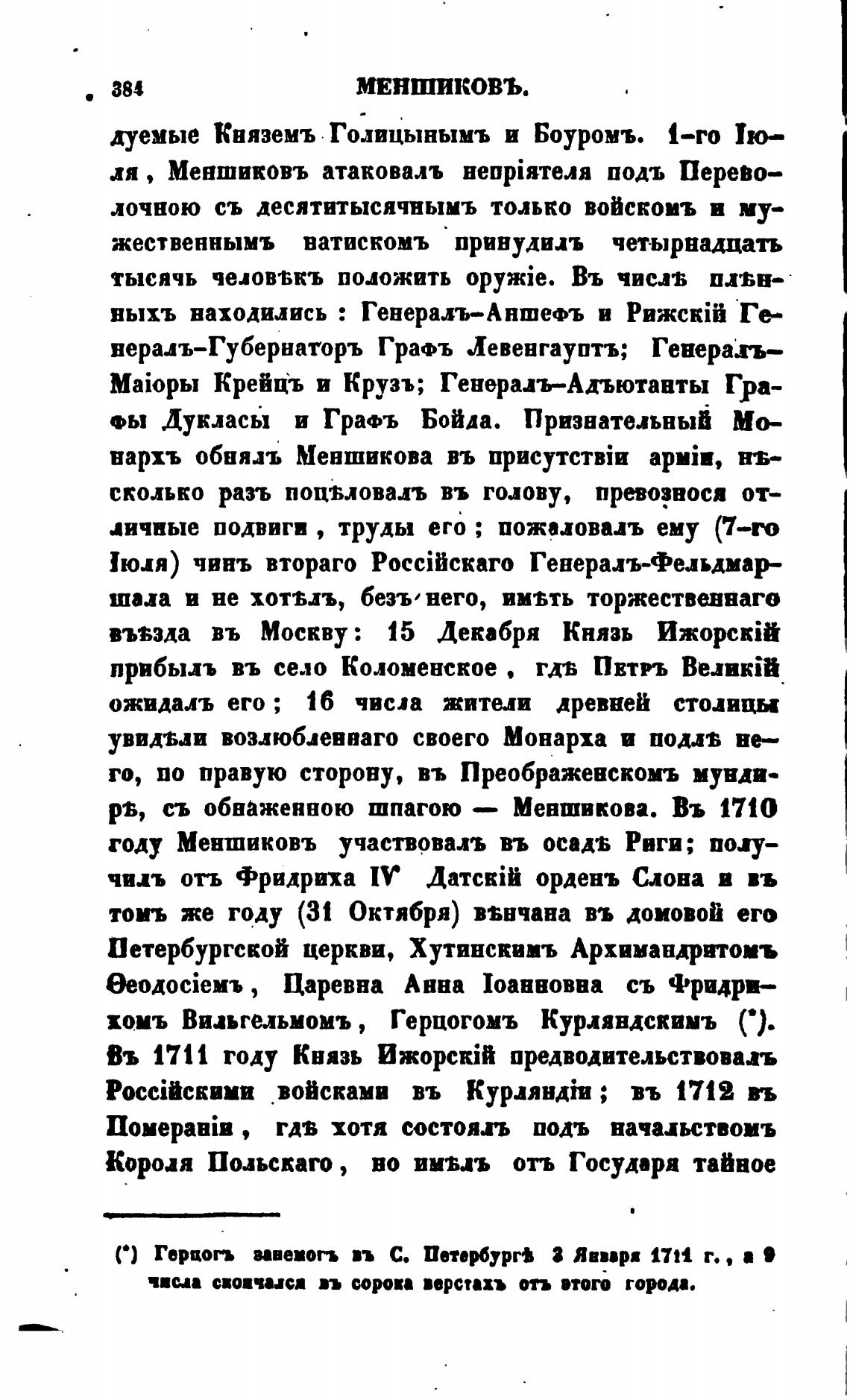 Въ 1711 году Князь ИжорскТ предводительствовал