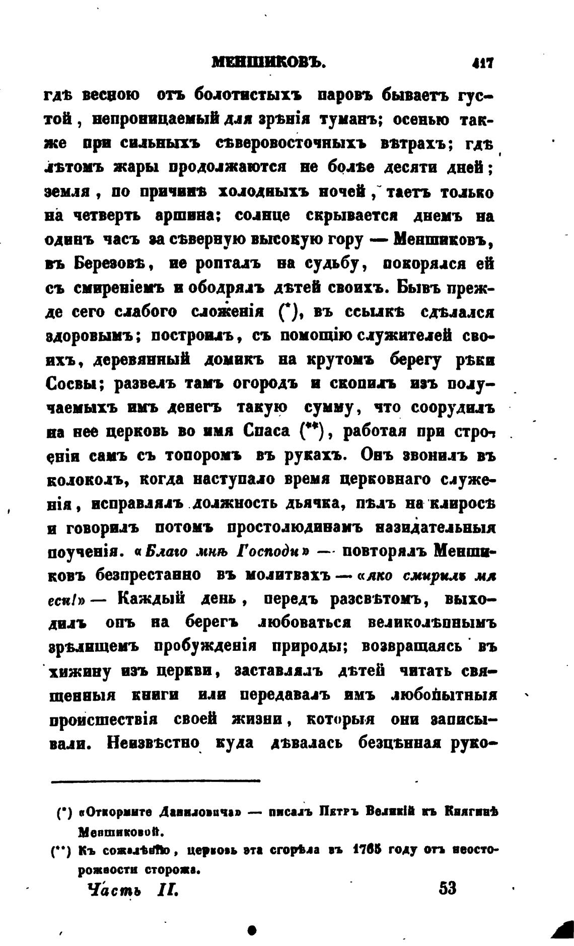 одввъ часъ и сзвервую высокую гору — Меншвковъ,