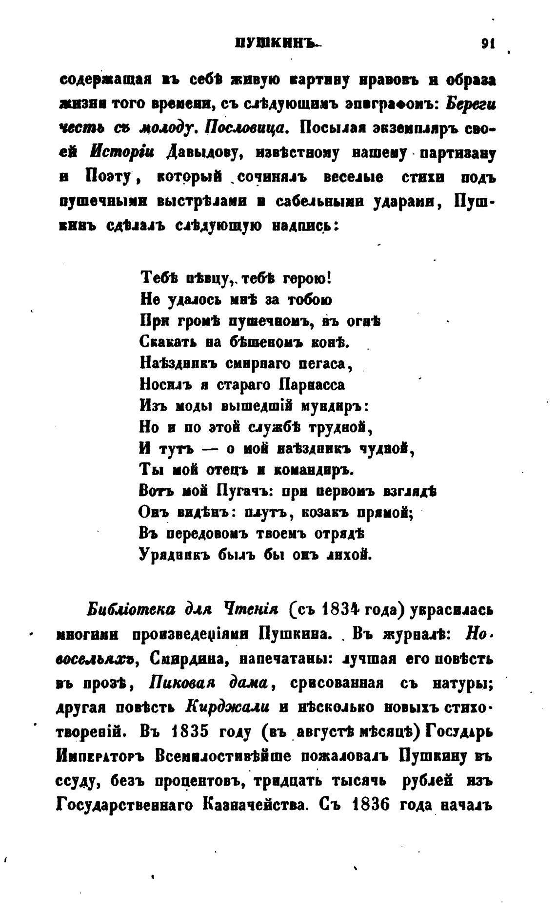 ИМПЕРАТОРЪ Всемилостив•ьйше пожаловал Пушквну въ