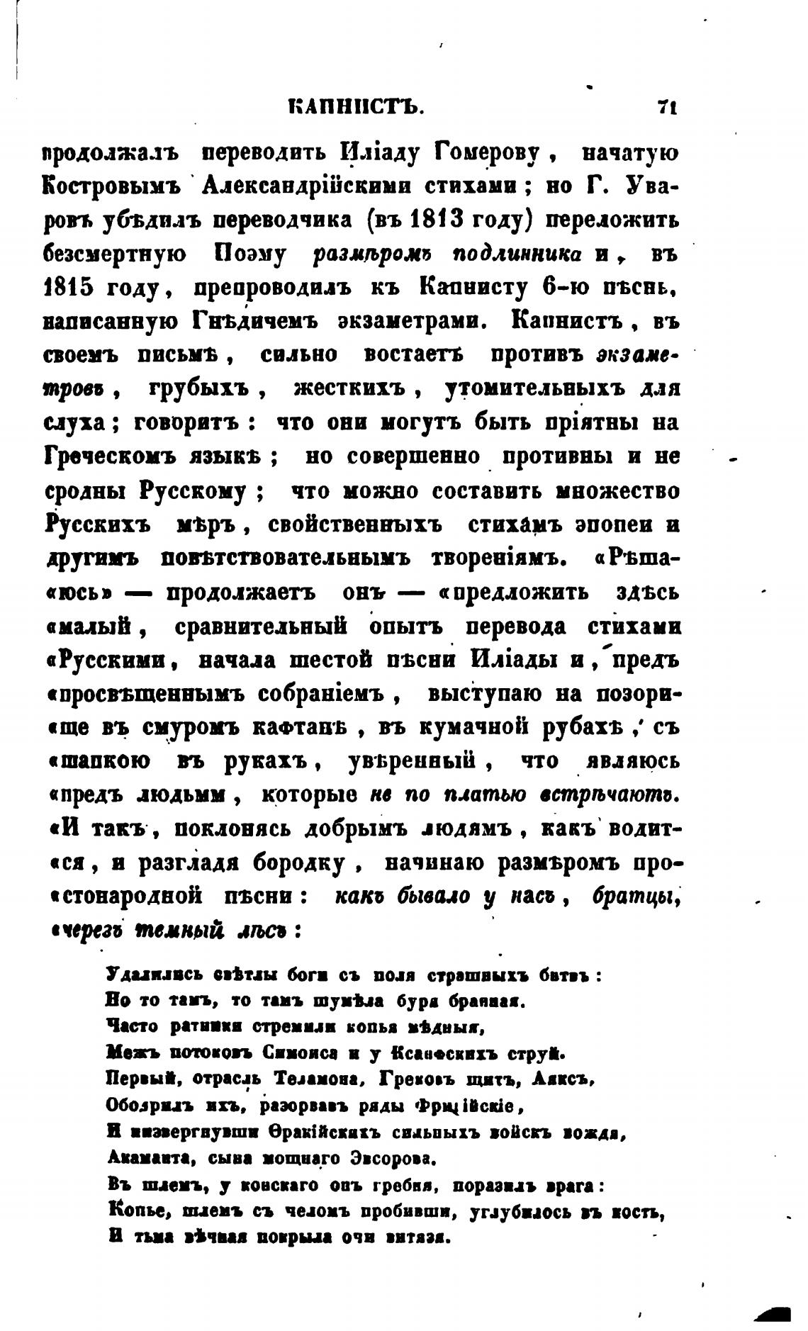 написанную Гнтдичемъ экзаметрами. Капнистъ , въ