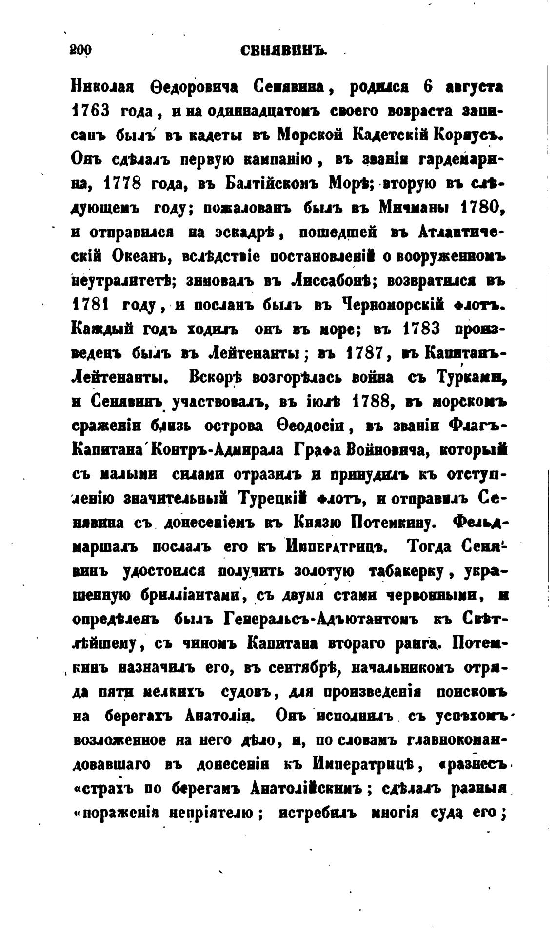в Сенявинъ участвовал, въ iwt 1788, въ иорсвоиъ