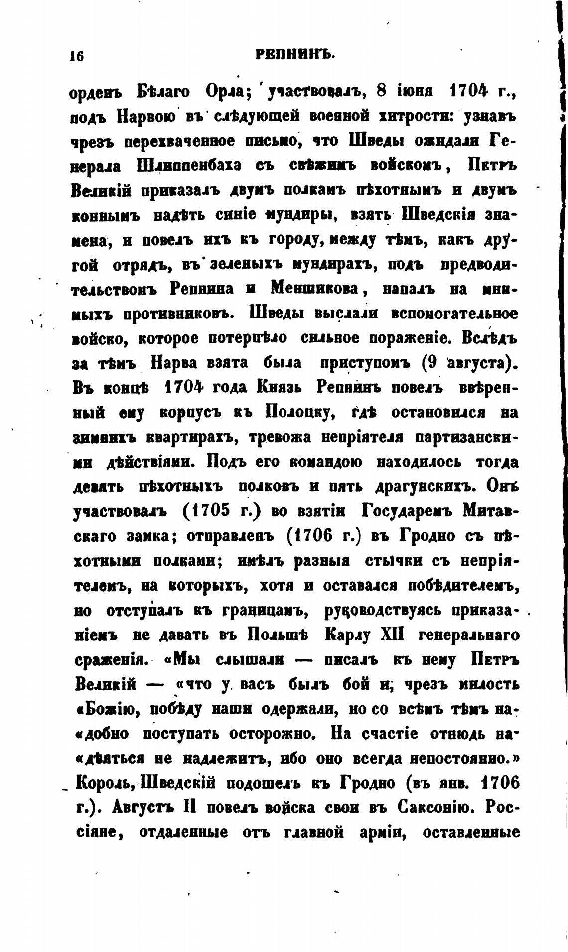Въ вовц•Ь 1704 года Князь Репвинъ повел вг±рен-