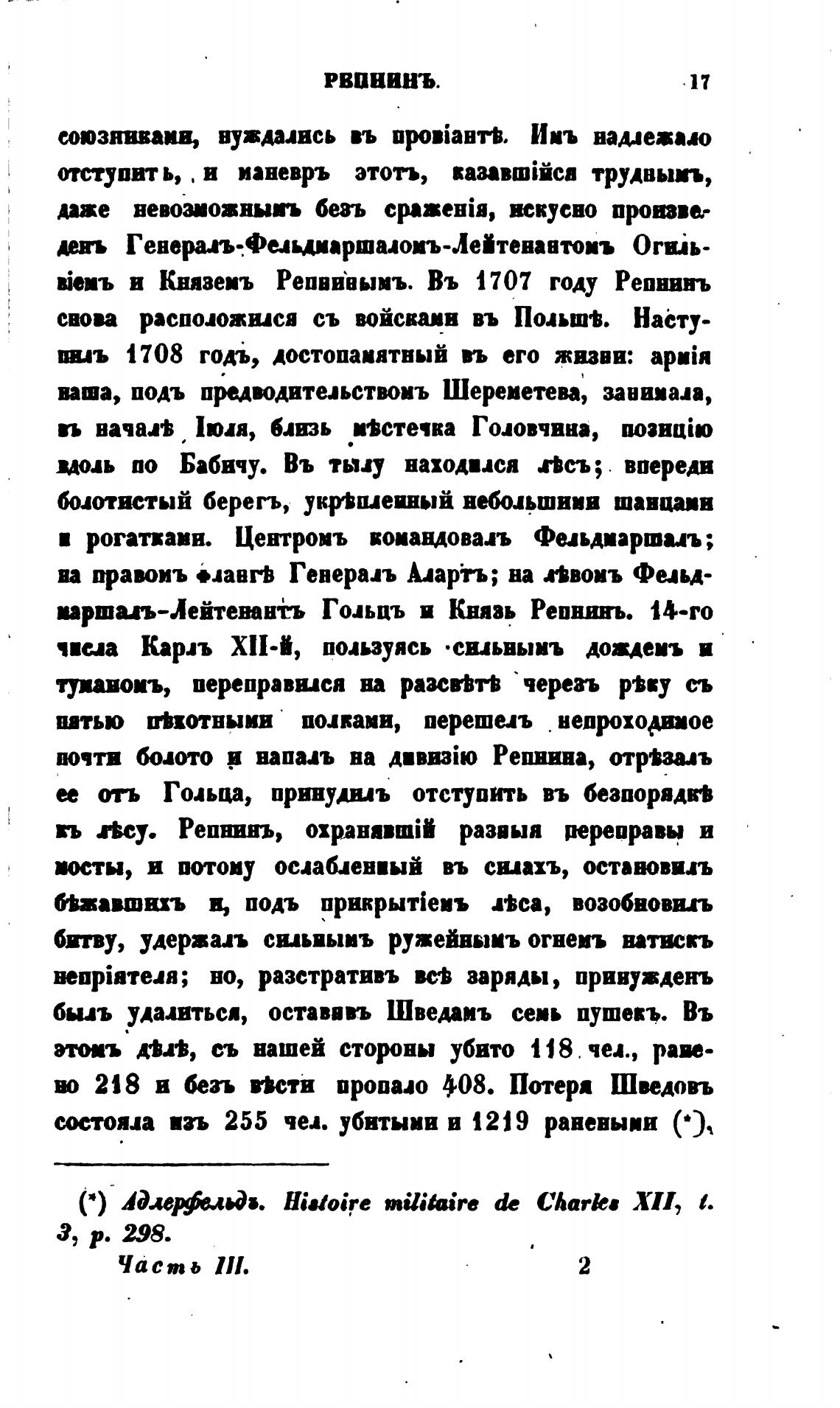 быль удалиться, оставввъ Шведаиъ семь пушевъ. Въ