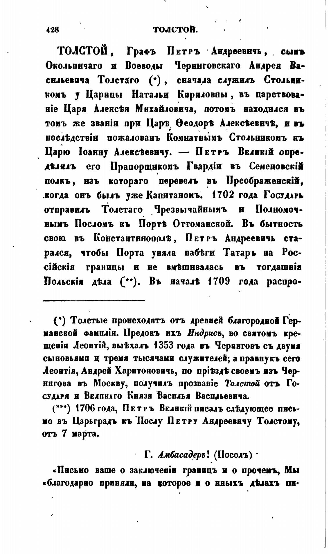 ТОЛСТОЙ, грап ПЕТРЪ • Андреевичь,