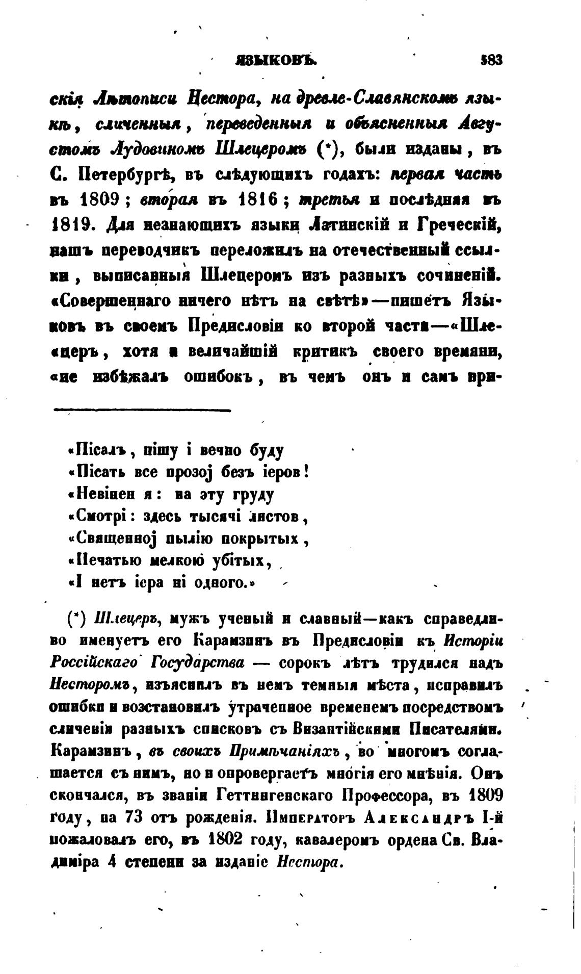 ( * ) Шлецерь, мужь ученый в славвый—какъ справедли-