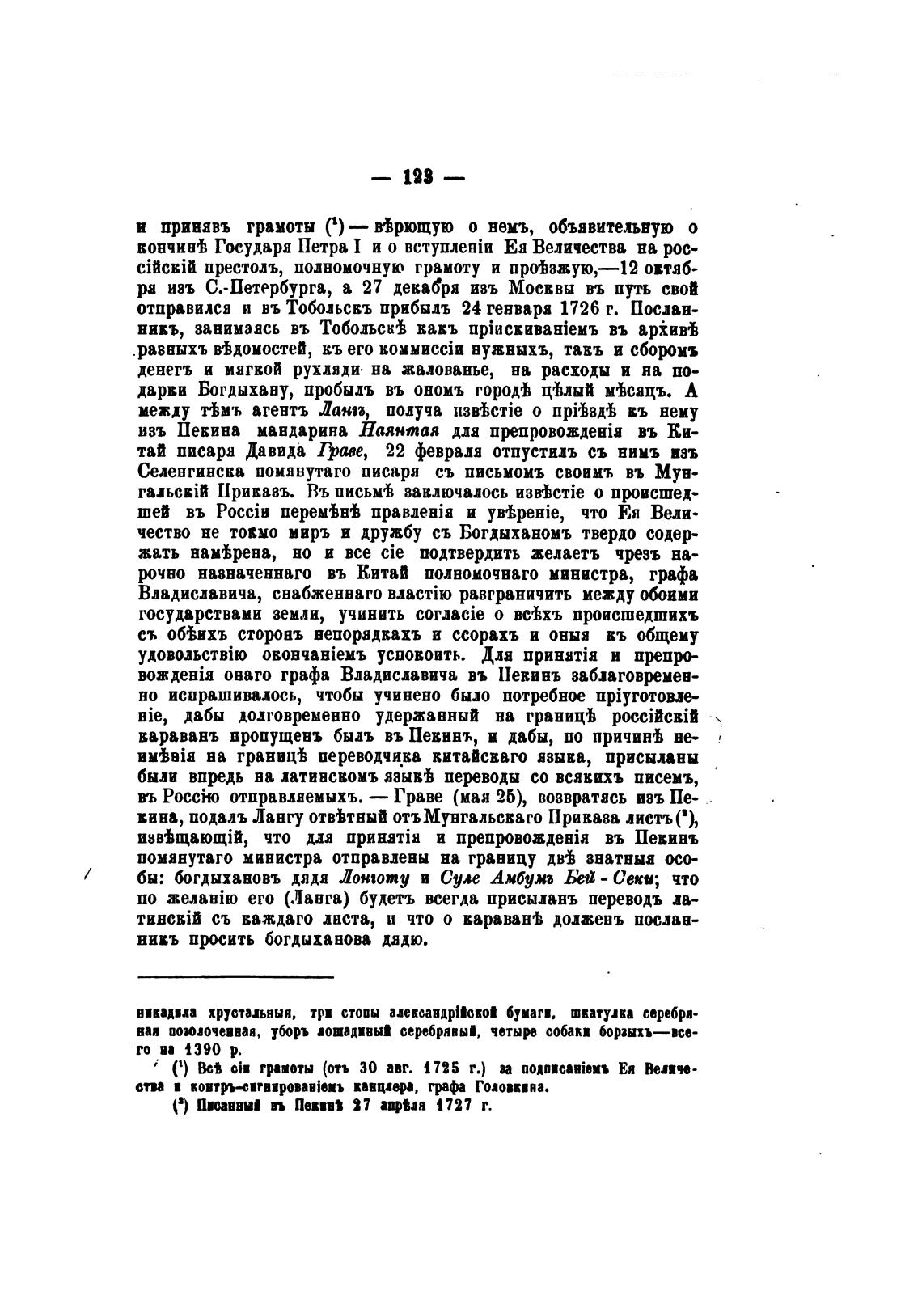 отправился и въ Тобольскъ прибыль 24 генваря 1726 г. Послан-
