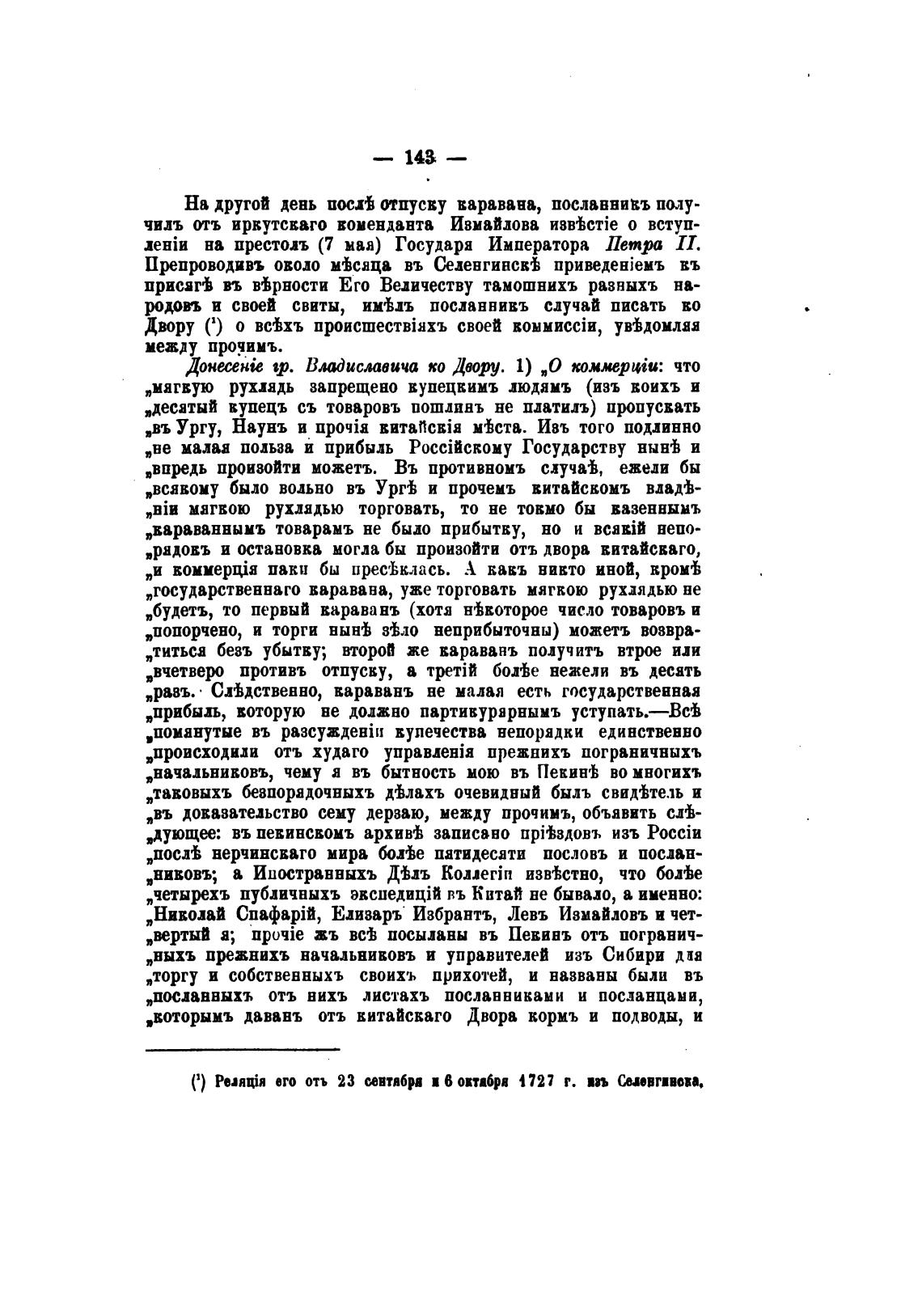 (1) Реляјя его отъ 23 ив:ябра б октября 1727 г. т Сшвгивоп,