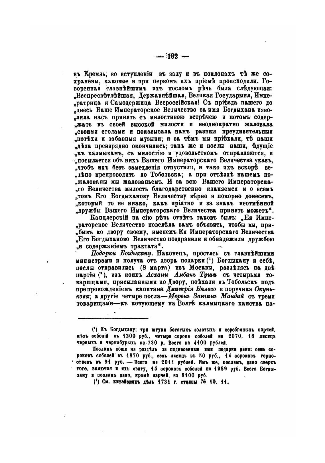 министрами и получа отъ двора подарки (1) Богдыхану и сея,