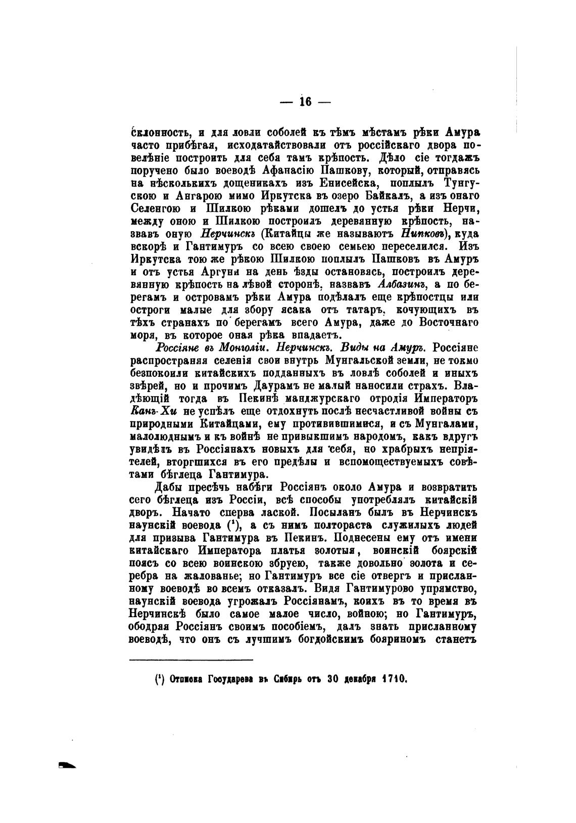 (1) Отоиова Гчдарап вь Сибирь отъ 30 девабра 1710.