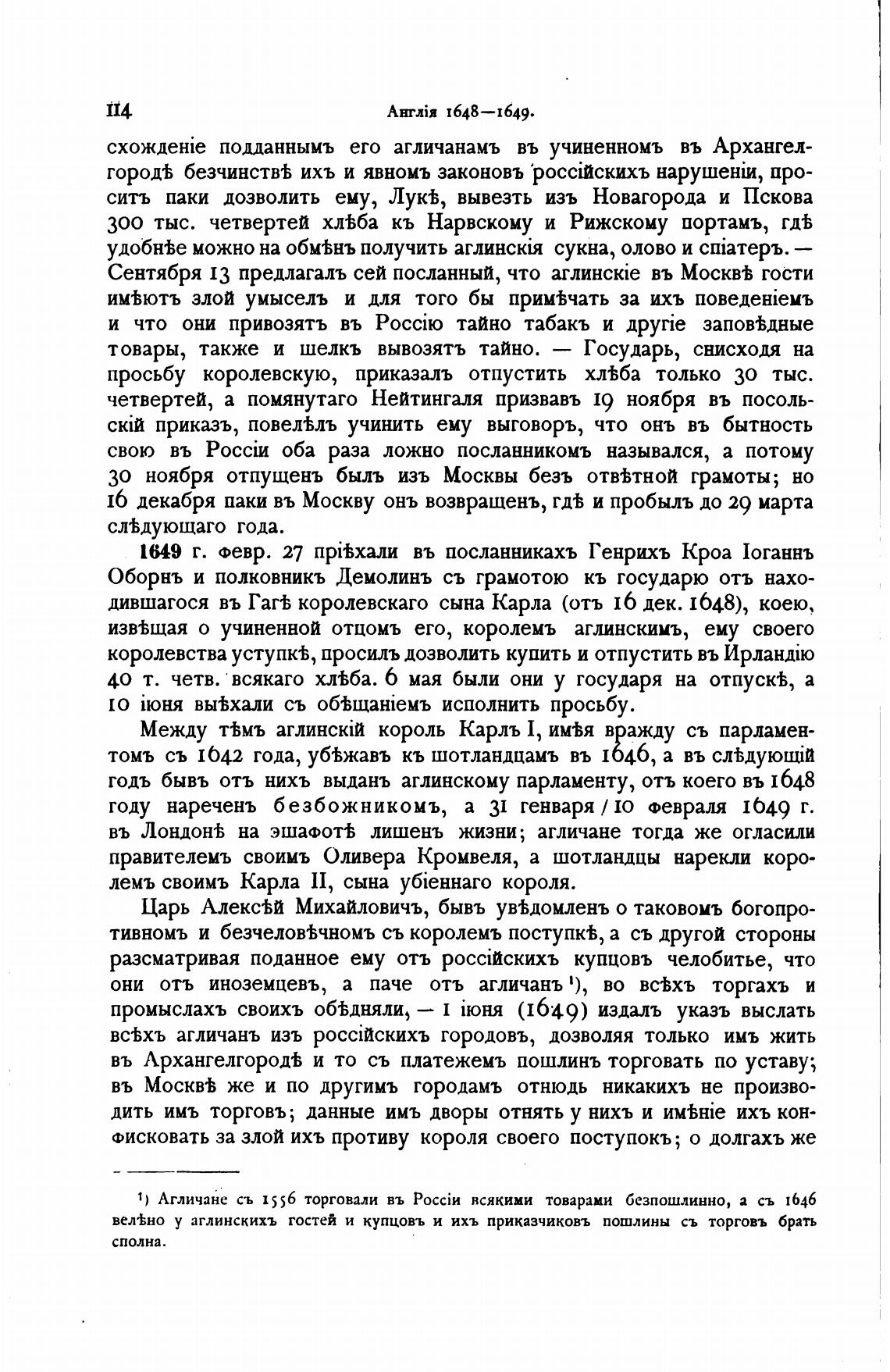 1) Агличане съ 1556 торговали въ всякими товарами безпошлинно, а съ 1646