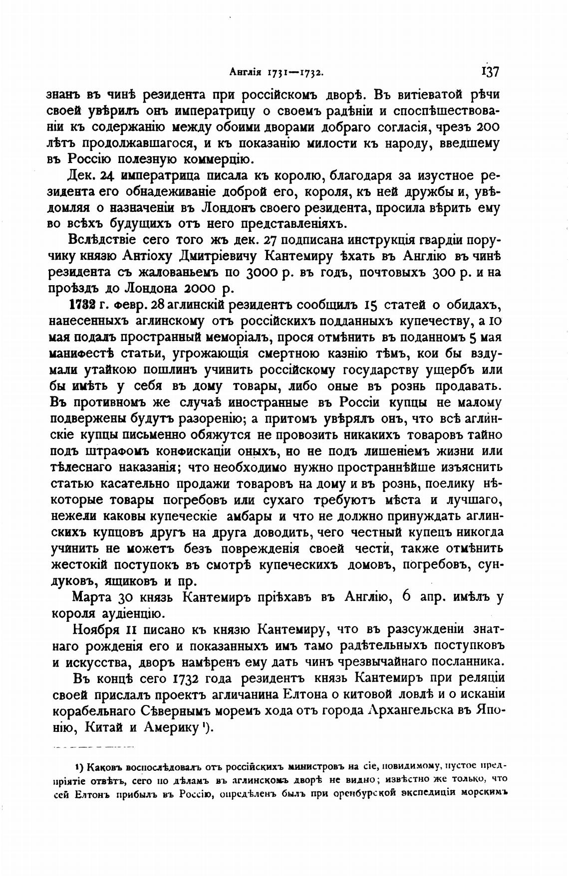 Въ конц± сего 1732 года резидентъ князь Кантемиръ при