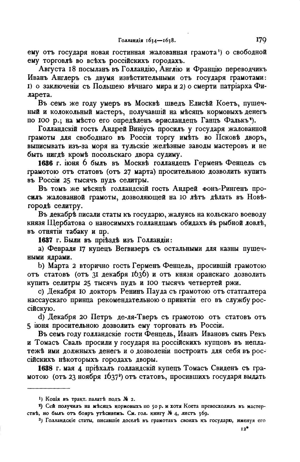 Ивань Англеръ съ двумя изв±стительными отъ государя грамотами:
