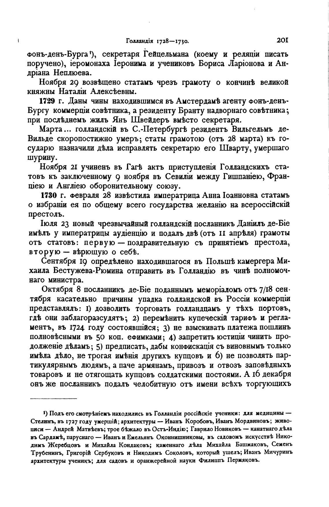 1729 г. Даны чины находившимся въ Амстердам% агенту Фонъ-денъ-