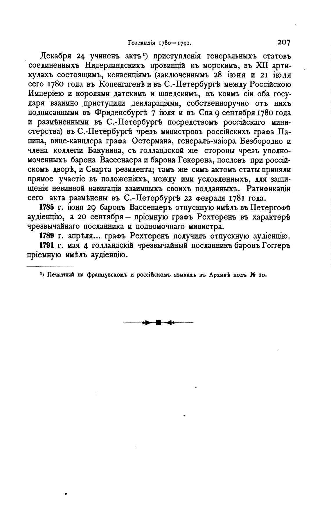 1) Печатный на францувскомъ и pocciAck0Hb языкахъ въ Архив± подъ 10.