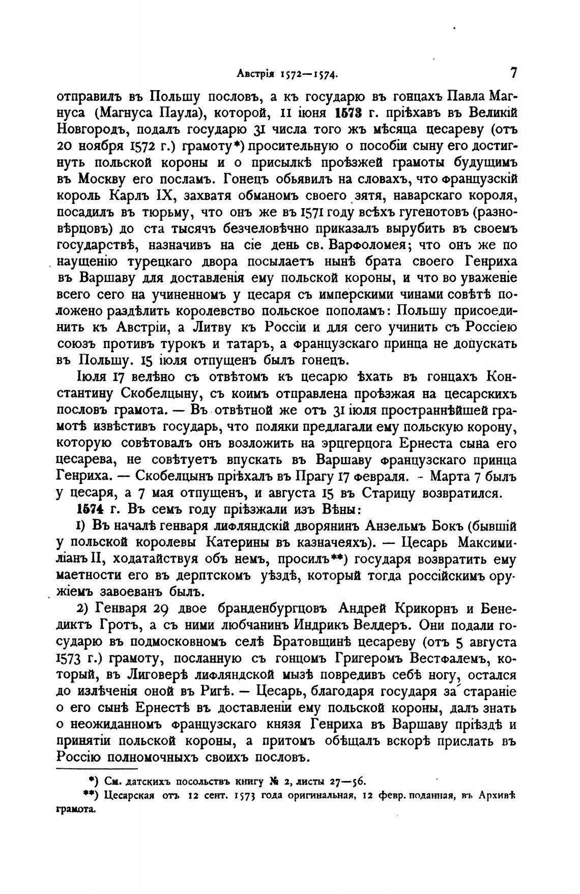 * * ) Цесарская отъ 12 сент. 1573 года оригинальная, 12 февр. поданная, въ Архив•к