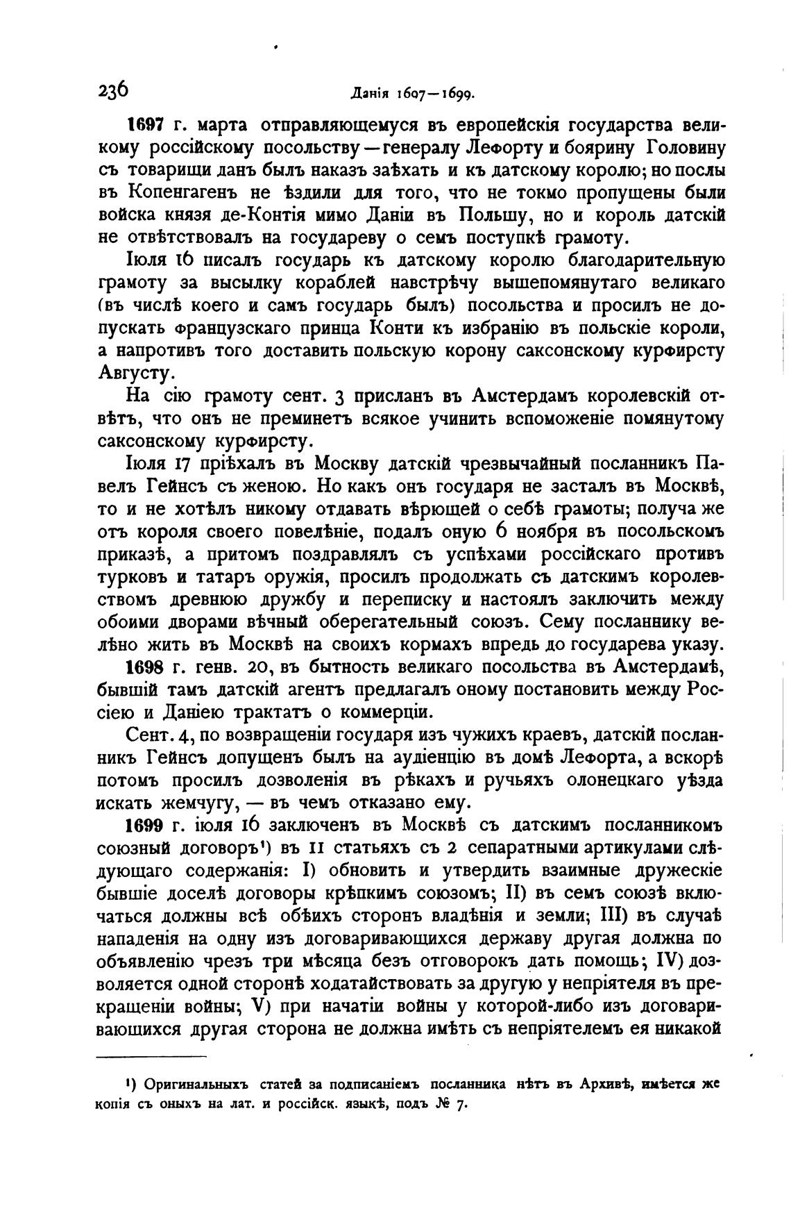 1699 г. 16 заключень въ Москв% съ датскимъ посланникомъ