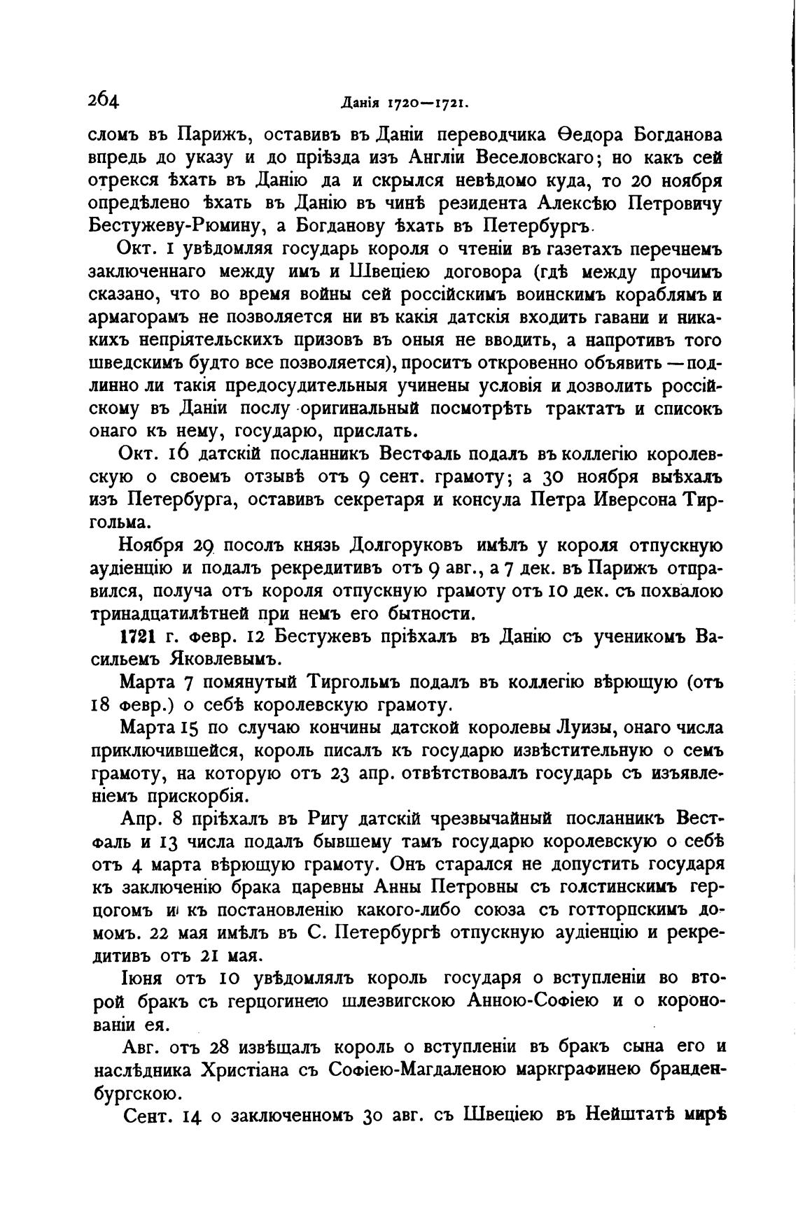 1721 г. Февр. 12 Бестужевъ прЊхалъ въ съ ученикомъ Ва-