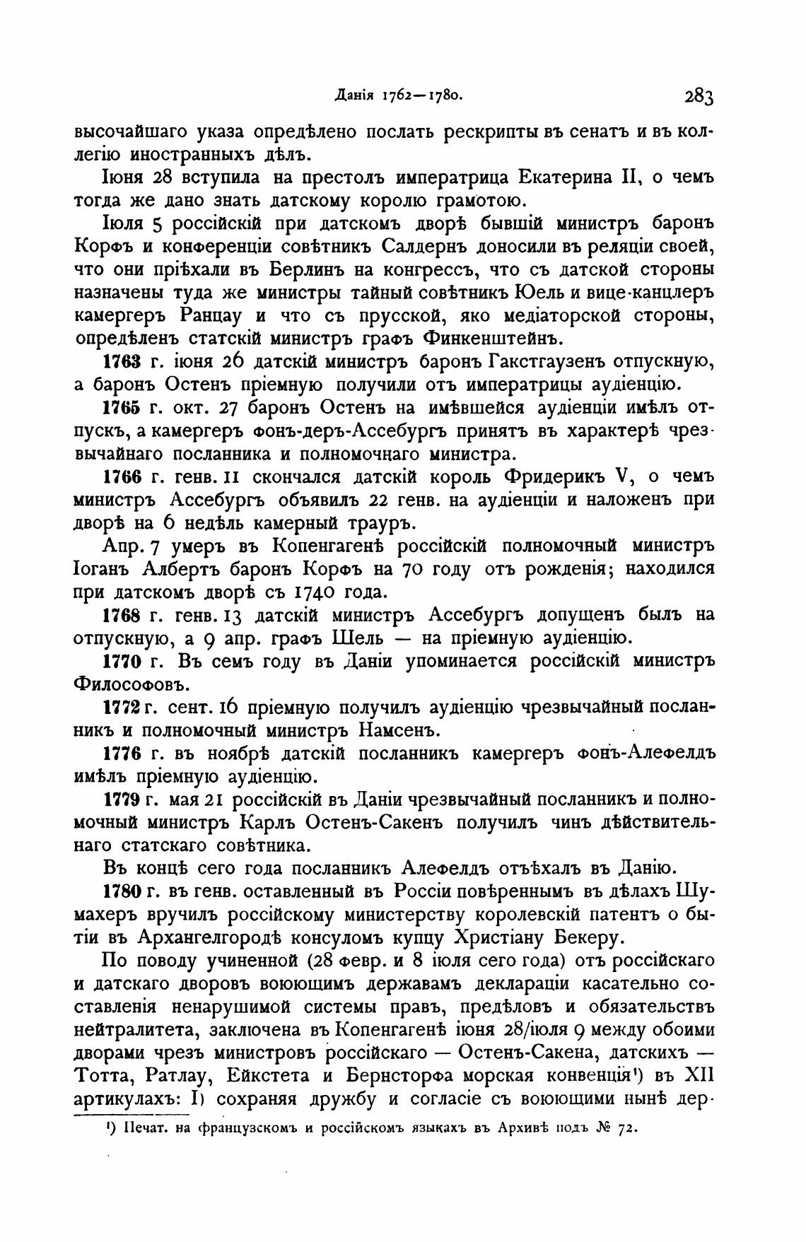 1768 г. генв. 13 министръ Ассебургъ допущень быль на