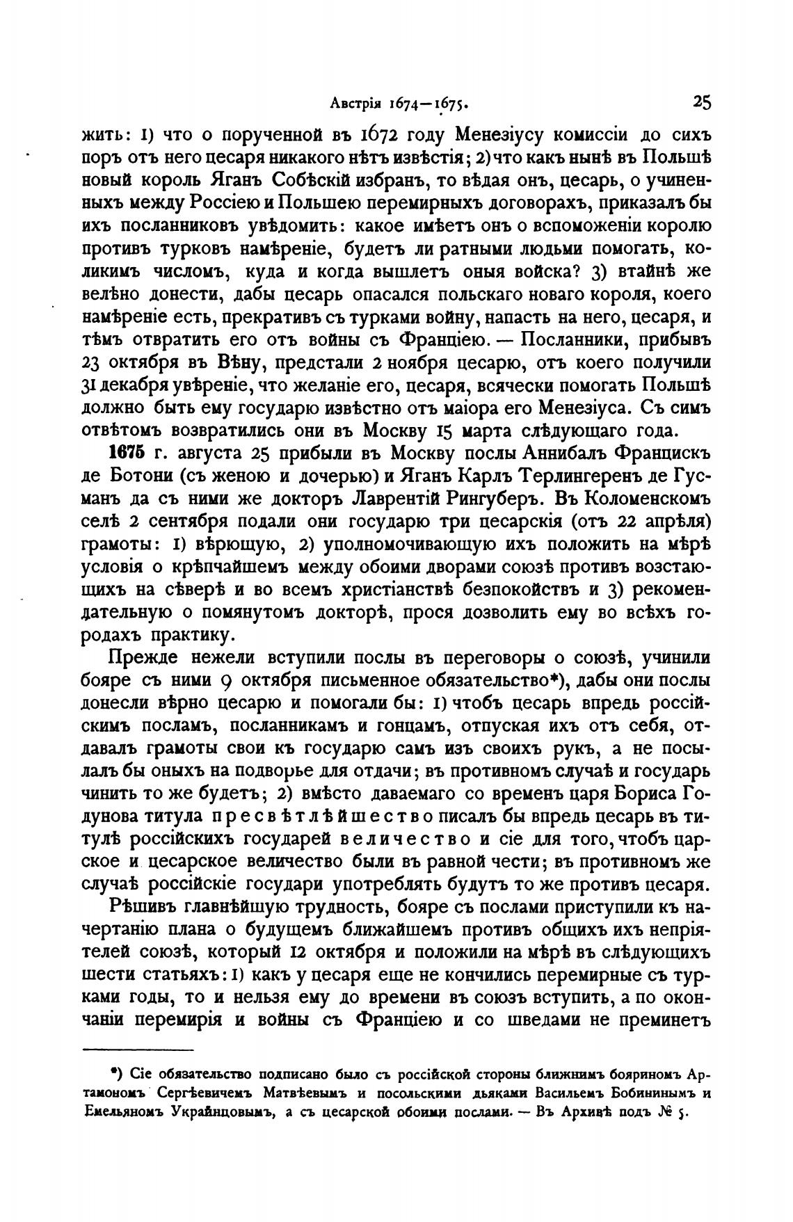 1675 г. августа 25 прибыли въ Москву послы Аннибалъ Францискъ