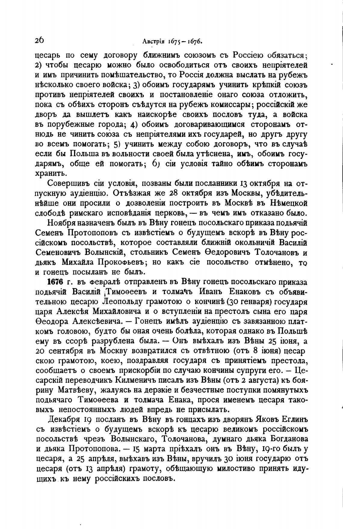 1676 г. въ феврал% отправлень въ В%ну гонецъ посольскаго приказа