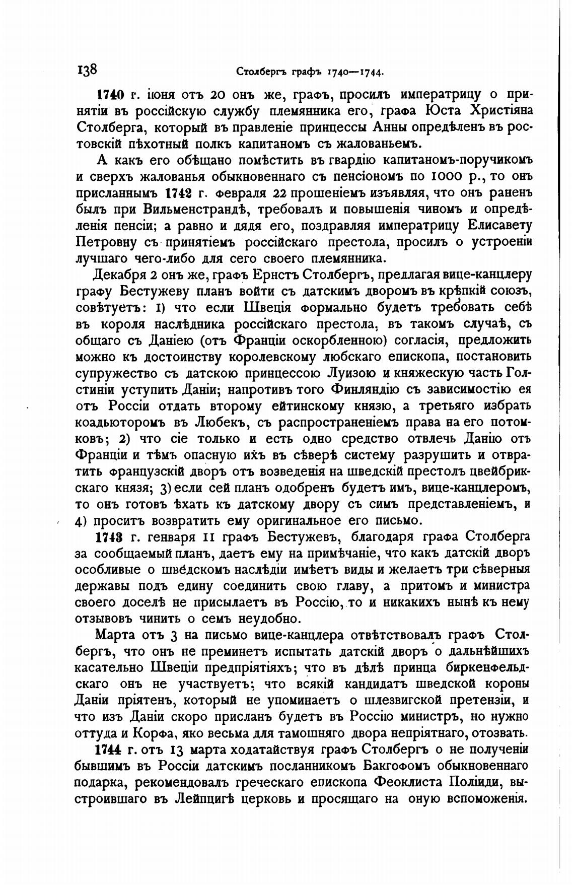 Столбергь графъ 1740—1744.
