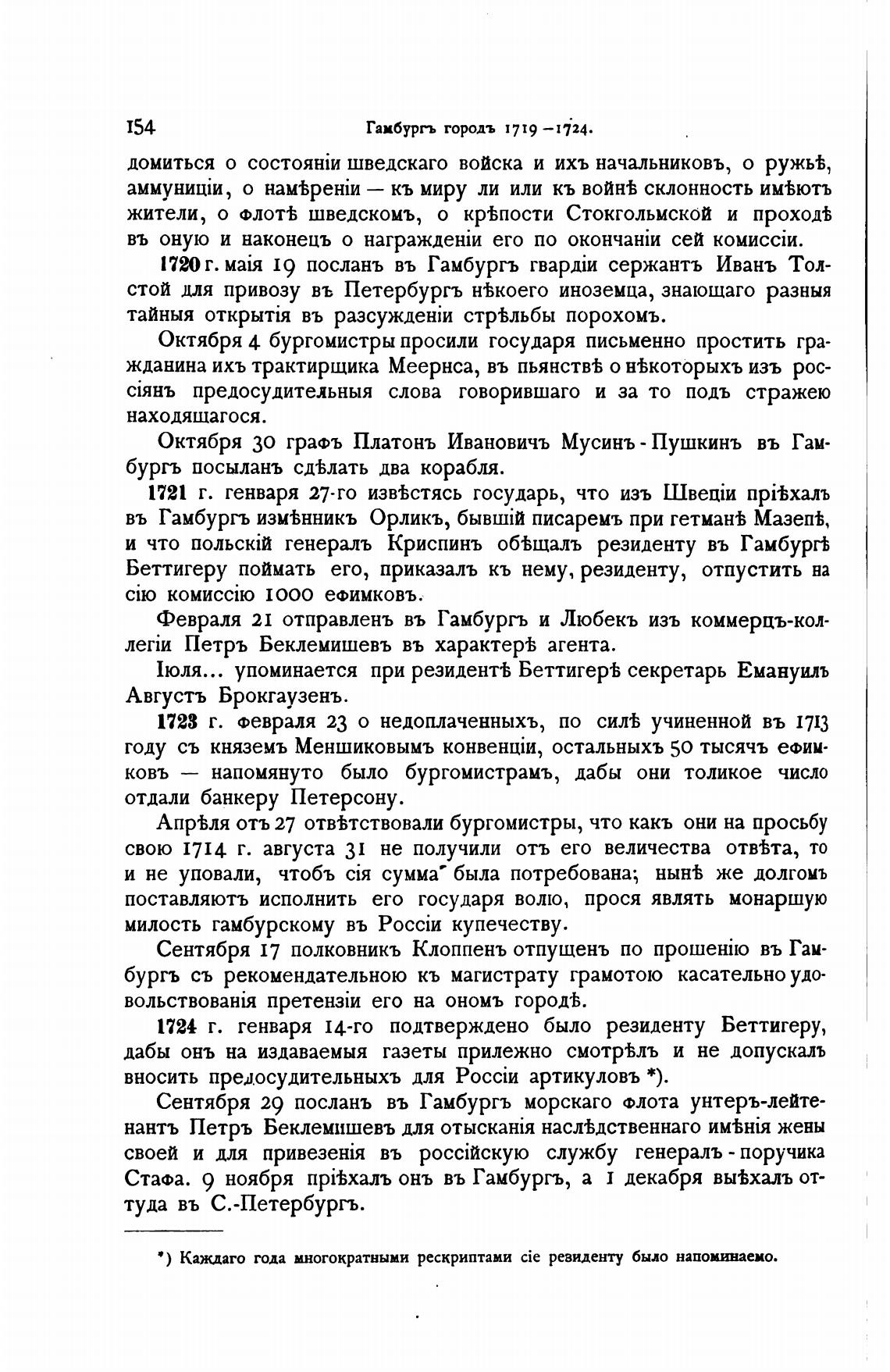 1720 г. 19 послань въ Гамбургъ сержантъ Ивань Тол-