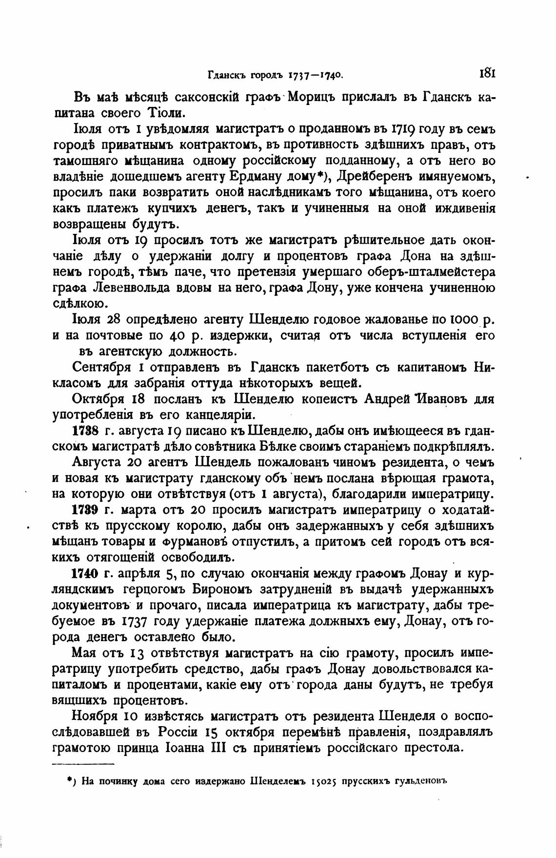 • ) На починку дома сего издержано Шенделемъ 15025 прусскихъ гульденовъ