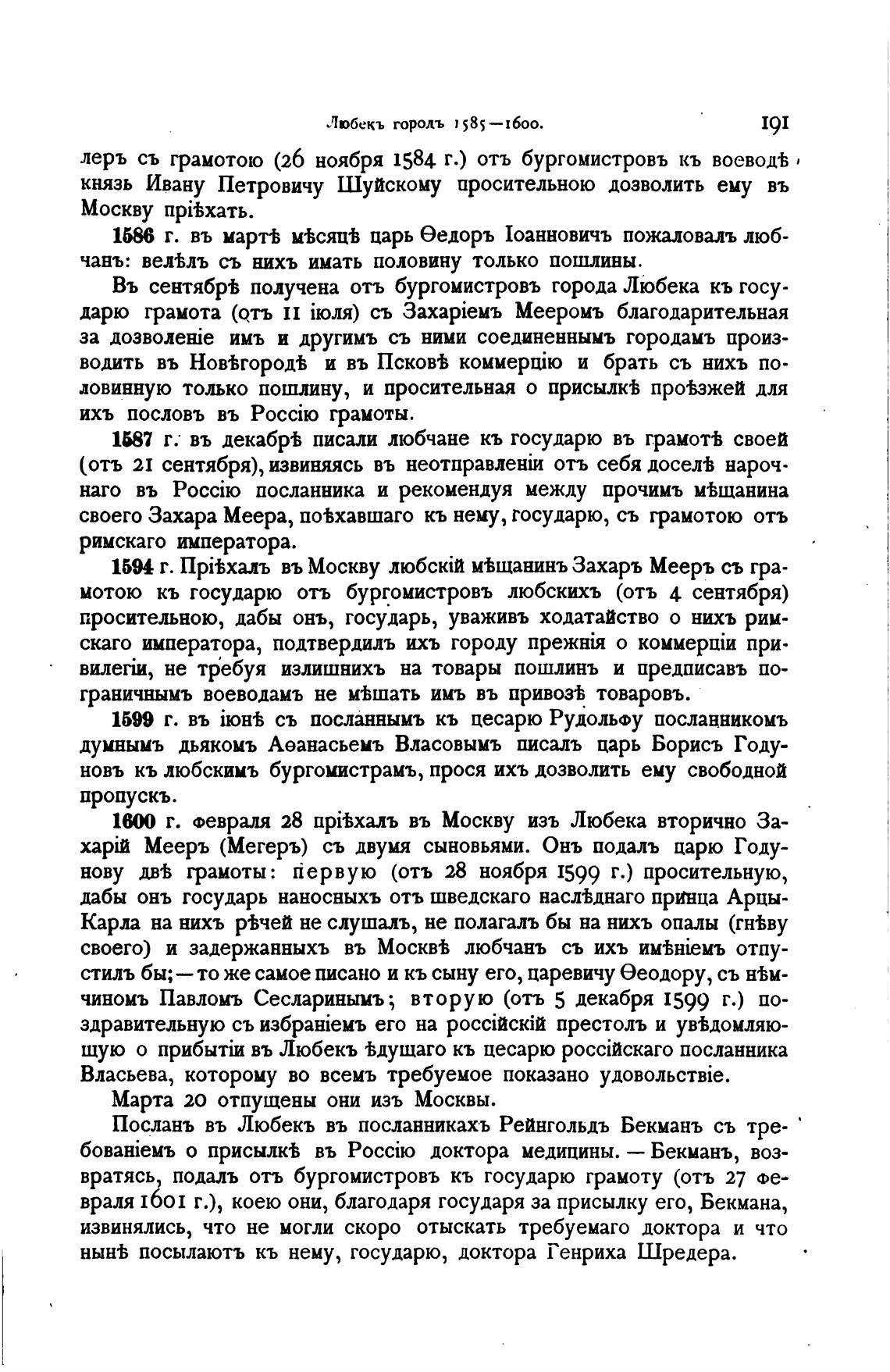 1594 г. ПрЊхалъ въ Москву м%щанинъ Захарь Мееръ съ гра-