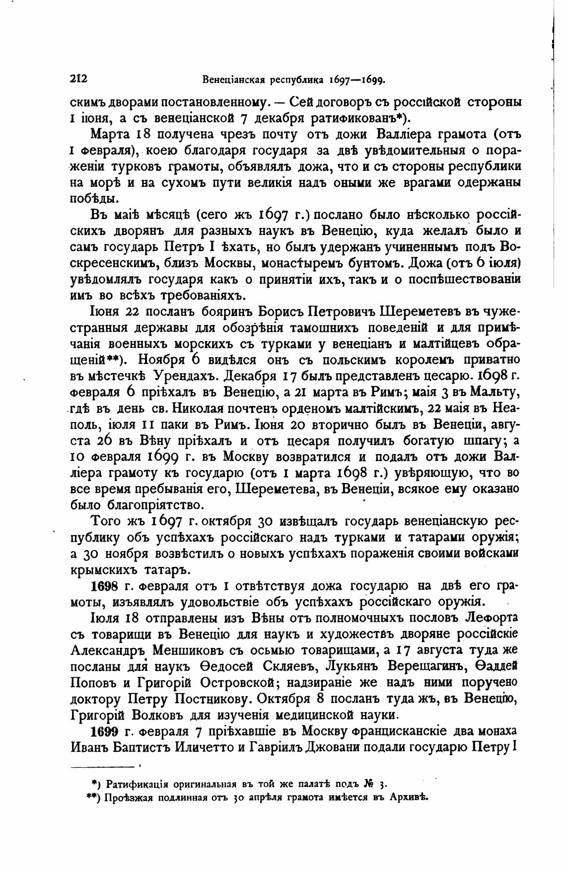 Того жъ 1697 г. октября 30 изв±щалъ государь венетнскую рес-