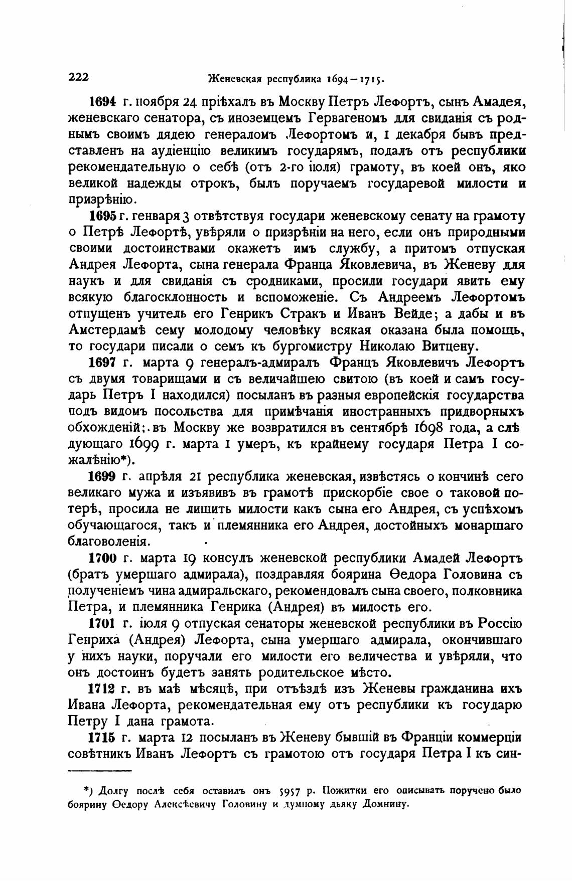1700 г. марта 19 консуль женевской республики Амадей Лефортъ