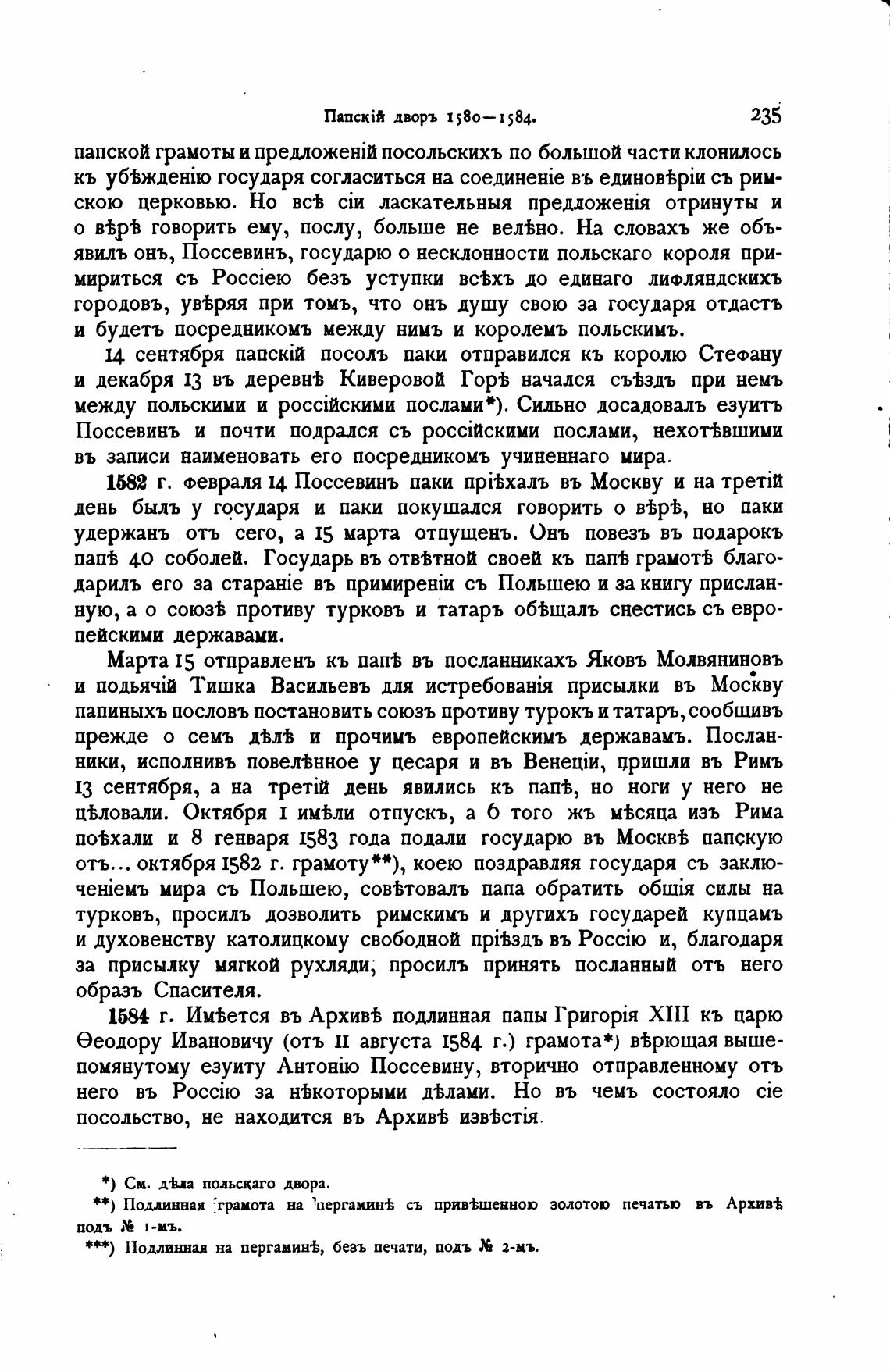 1584 г. Им%ется въ Архив% подлинная папы XIII кь царю
