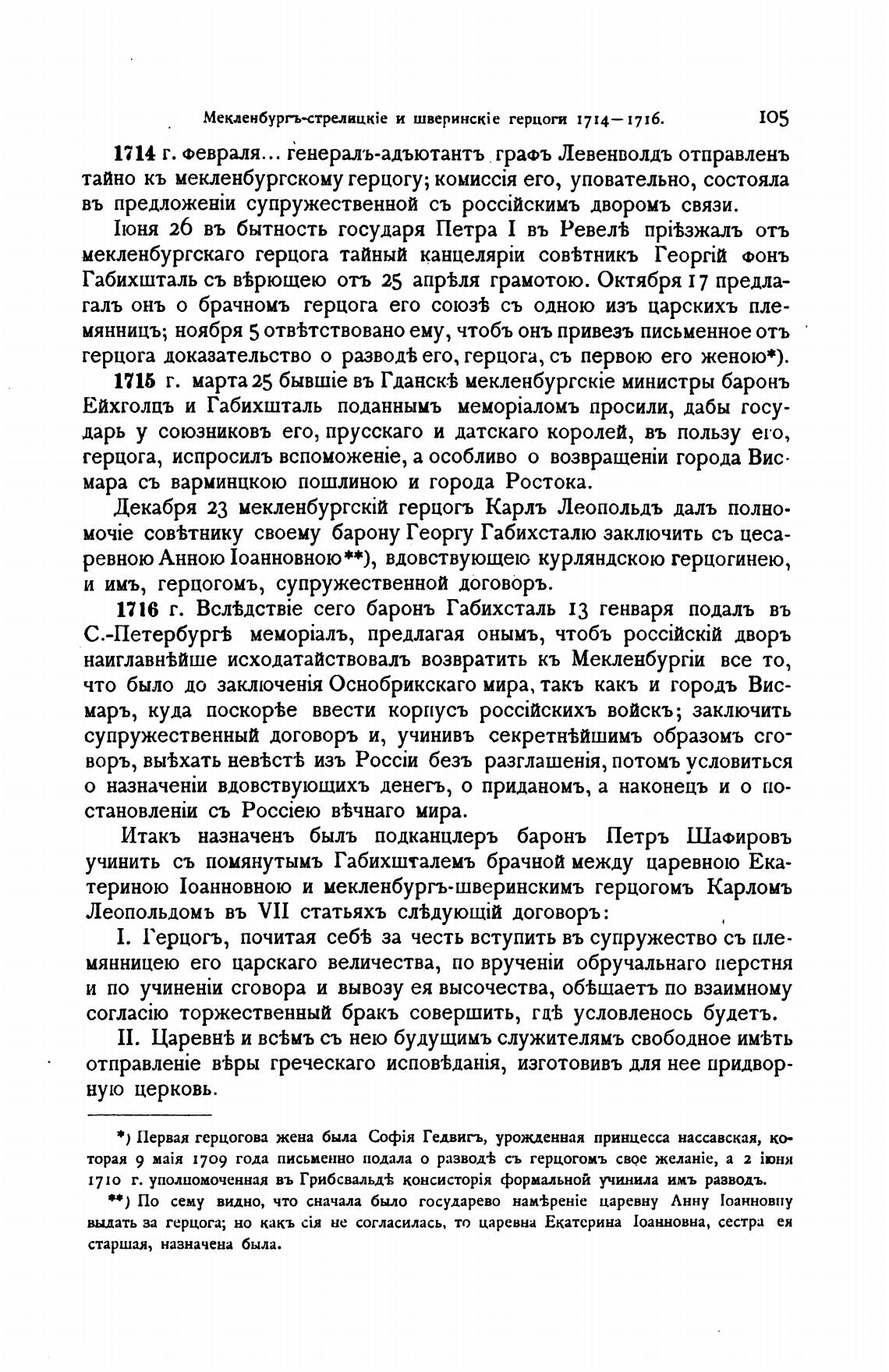 учинить съ помянутымъ Габихшталемъ брачной между царевною Ека-