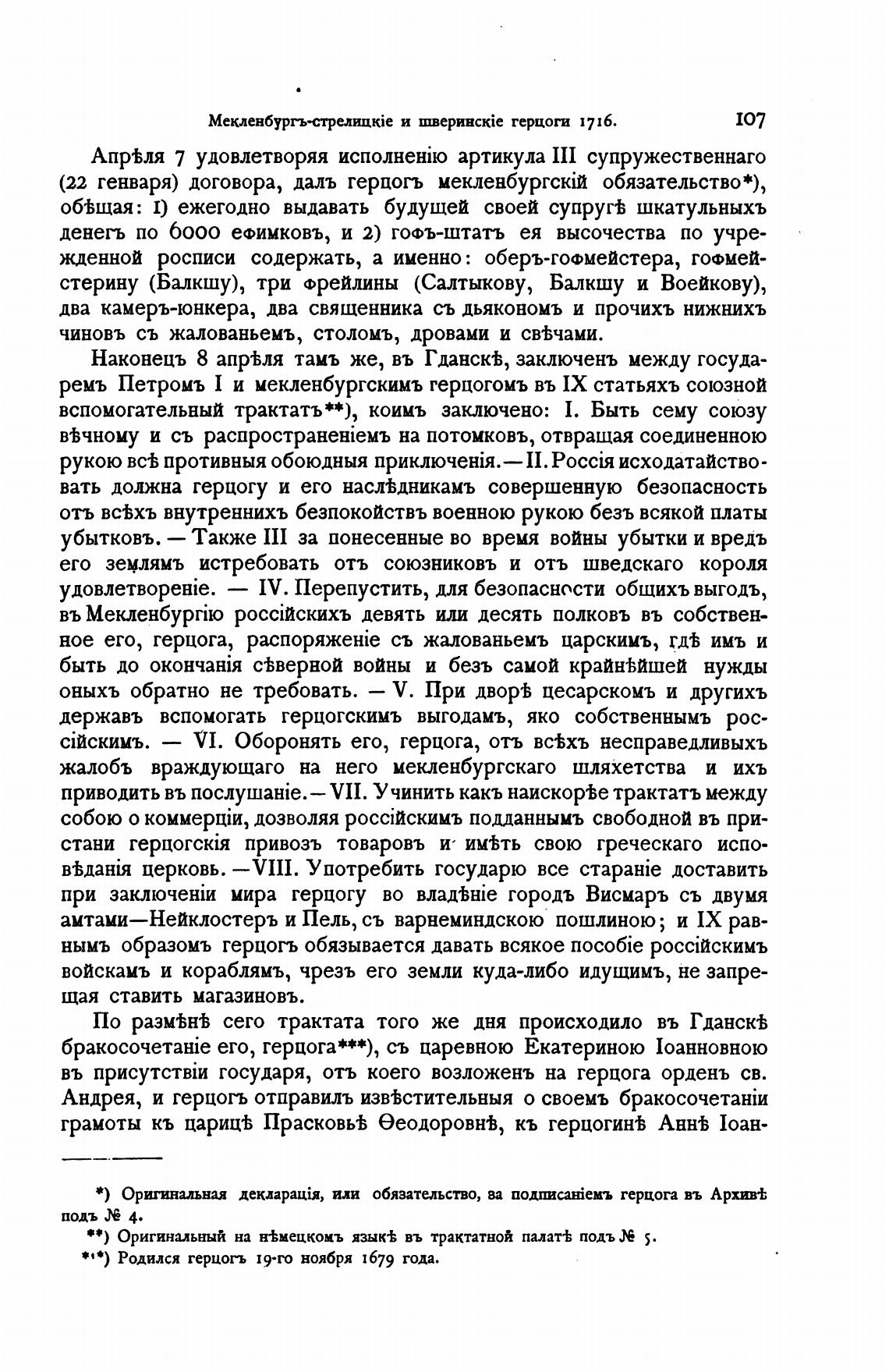 ремь Петромъ 1 и мекленбургскимъ герцогомъ въ IX статьяхъ союзной