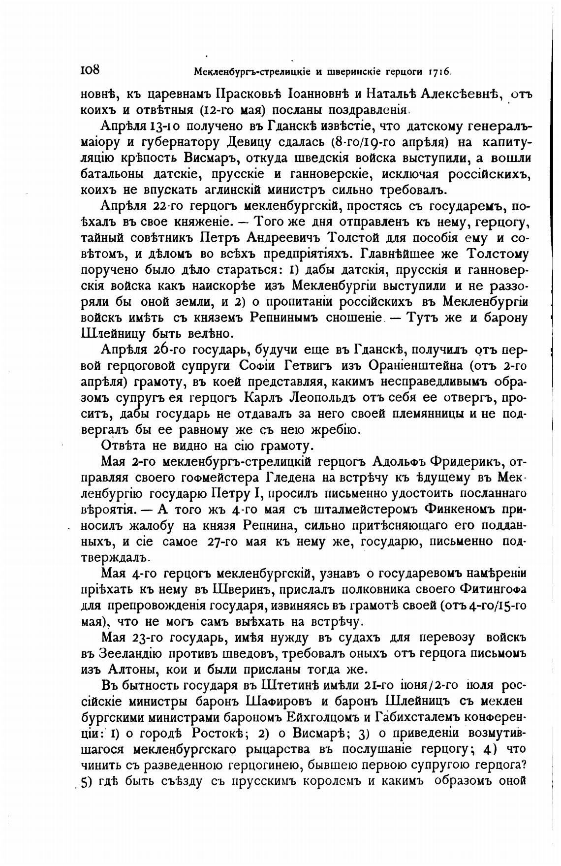 прњхать кь нему въ Шверинъ, прислалъ полковника своего Фитингофа