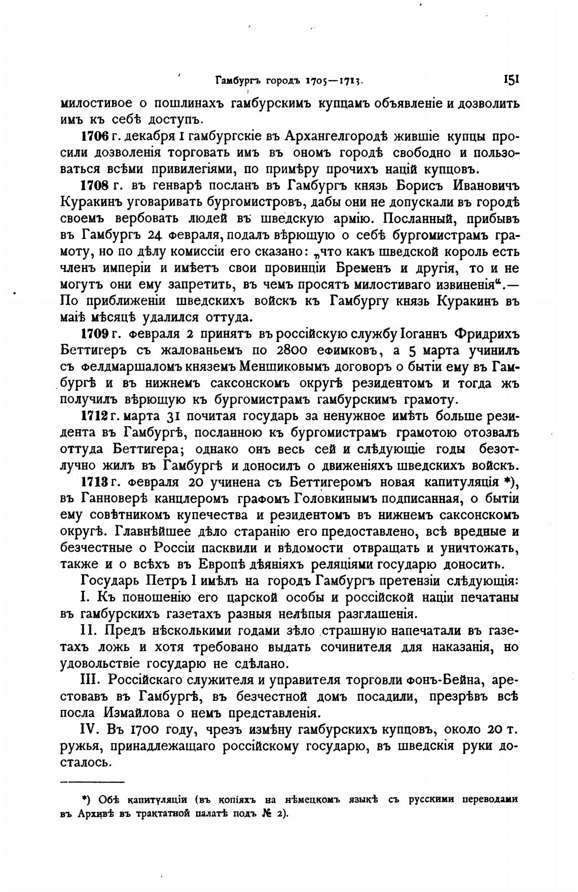 1708 г. въ генвар% послань въ Гамбургь князь Борись Ивановичъ