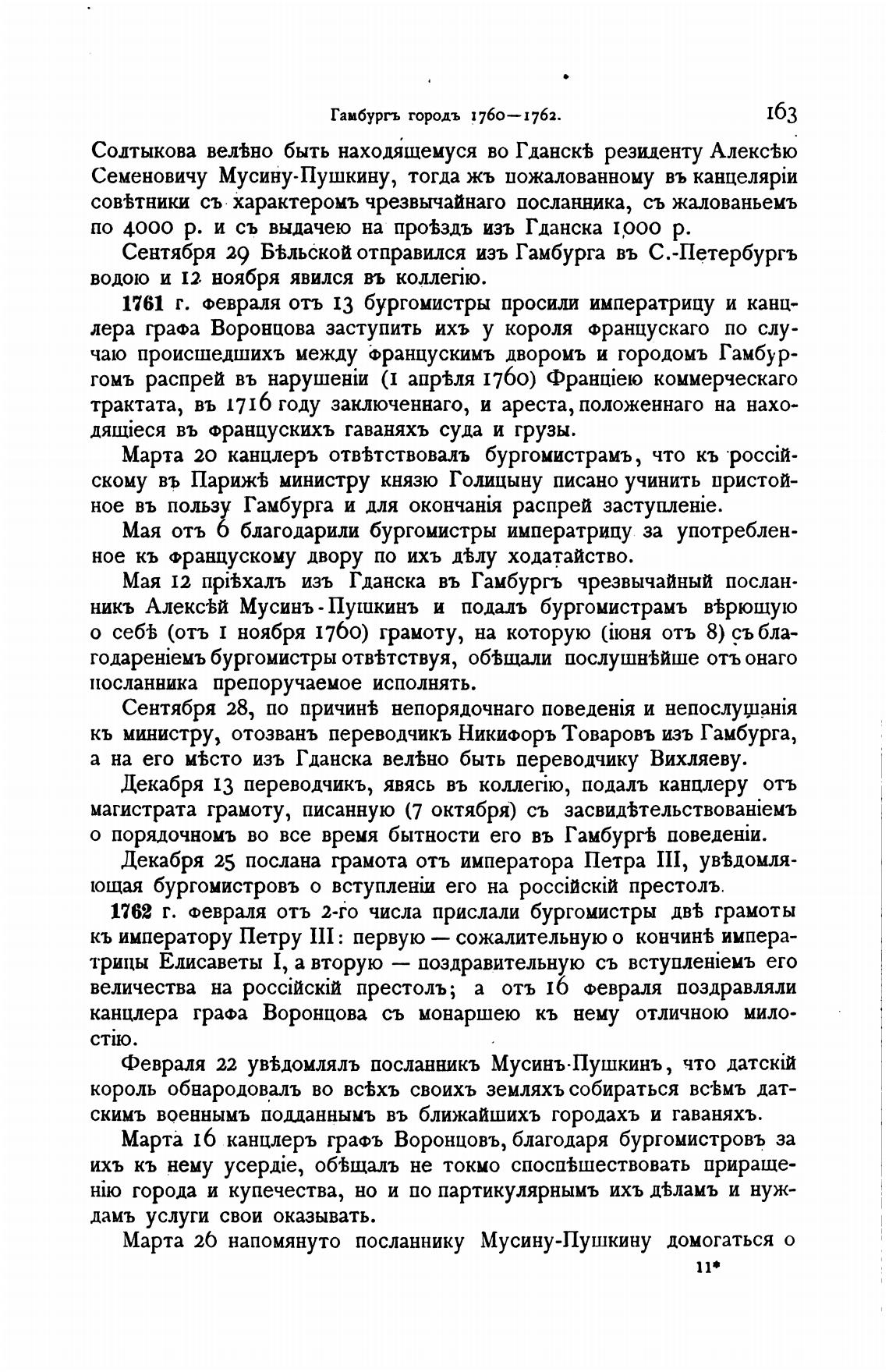 Марта 16 канцлеръ граФъ Воронцовъ, благодаря бургомистровъ за