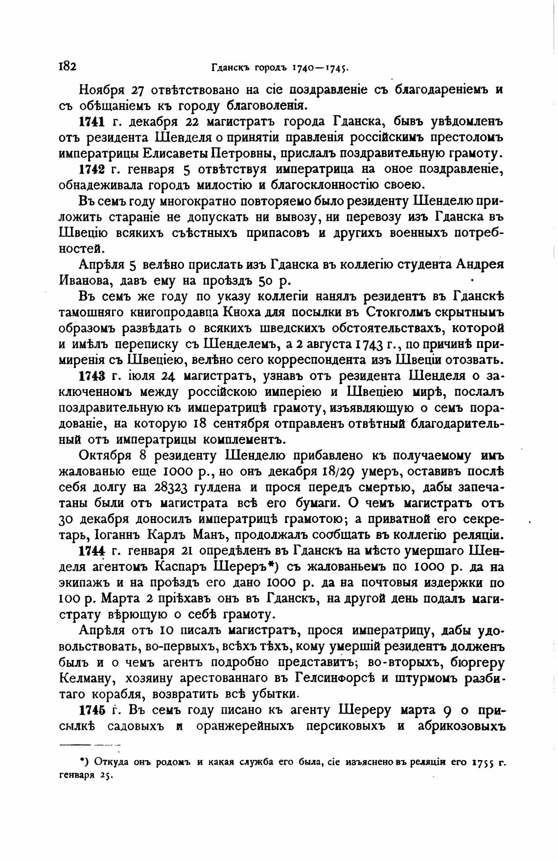 1745 Ё. Въ семь году писано кь агенту Шереру марта 9 о при-