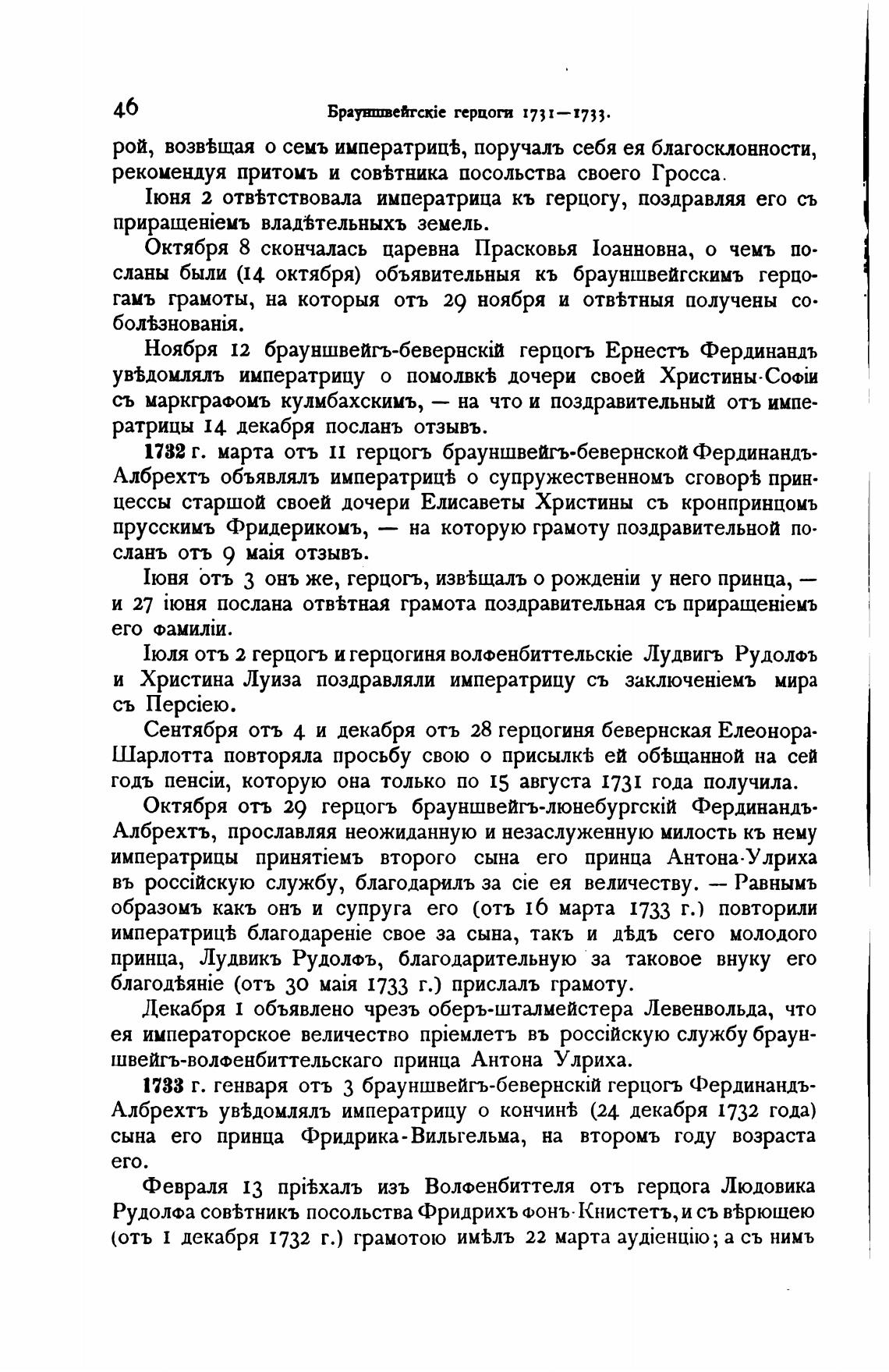 1732 г. марта отљ 11 герцогъ брауншвейгь.бевернской Фердинандъ•