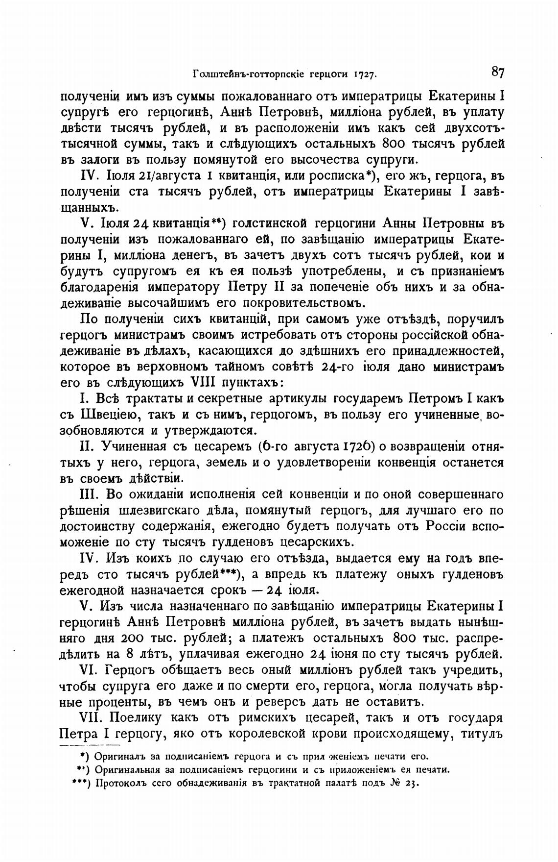 супругЬ его герцогинь, Анн•Ь Петровн%, рублей, въ уплату