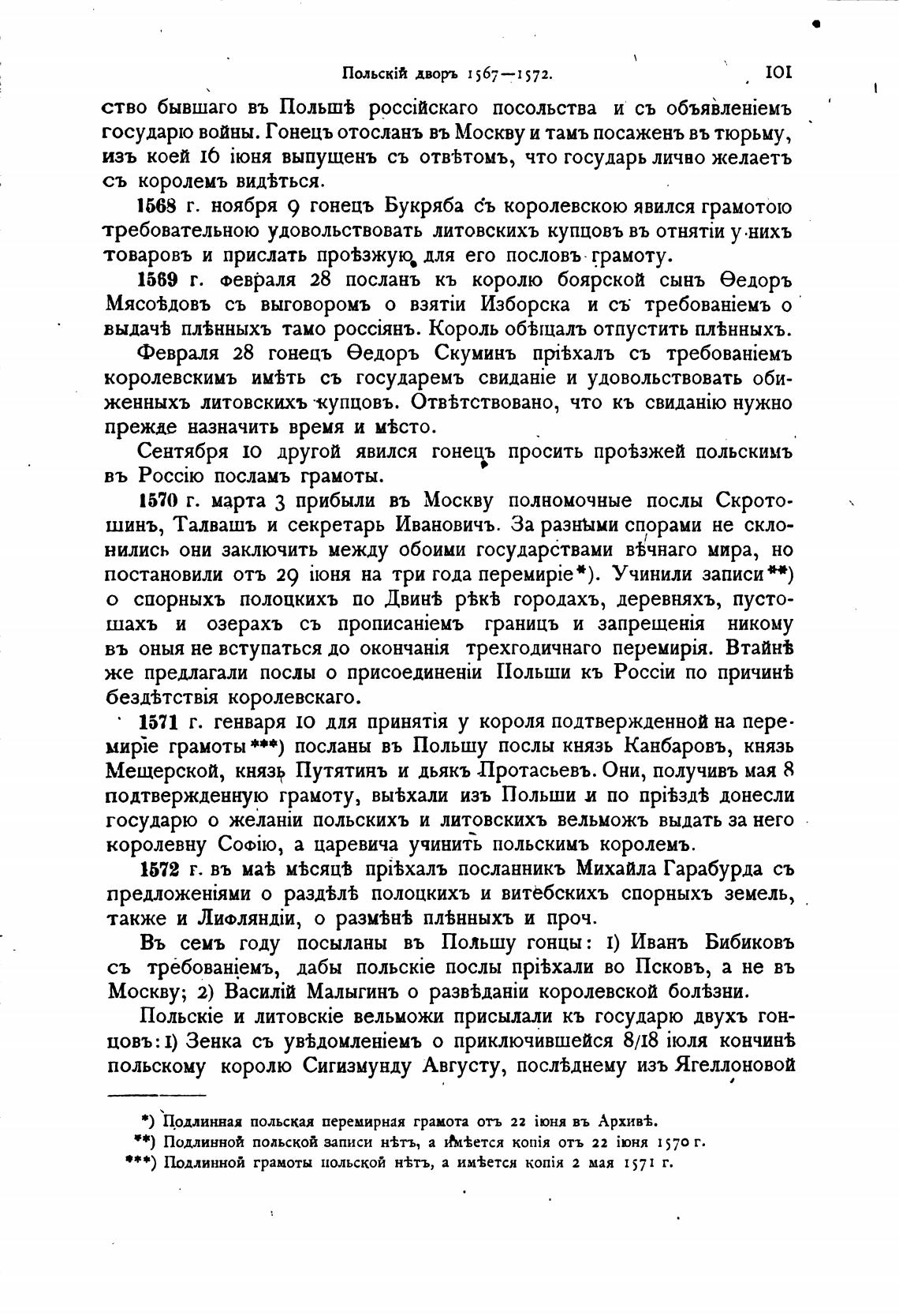 ***) Подлинной грамоты польской н±ть, а им±ется 2 мая 1571 г.