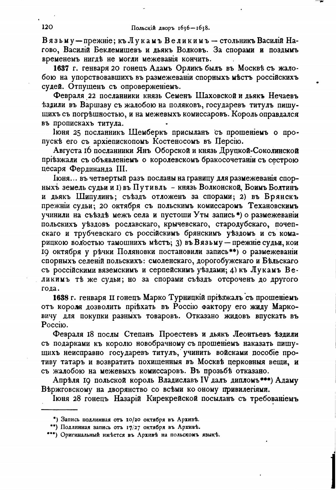 1637 г. генваря 20 гонецъ Адамъ Орликъ быль въ Москв% съ жало-