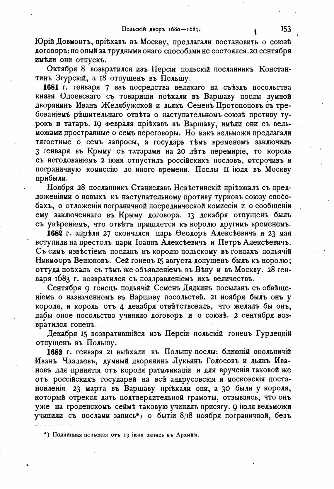 1683 г. генваря 21 вы%хали въ Польшу послы: окольнич:й