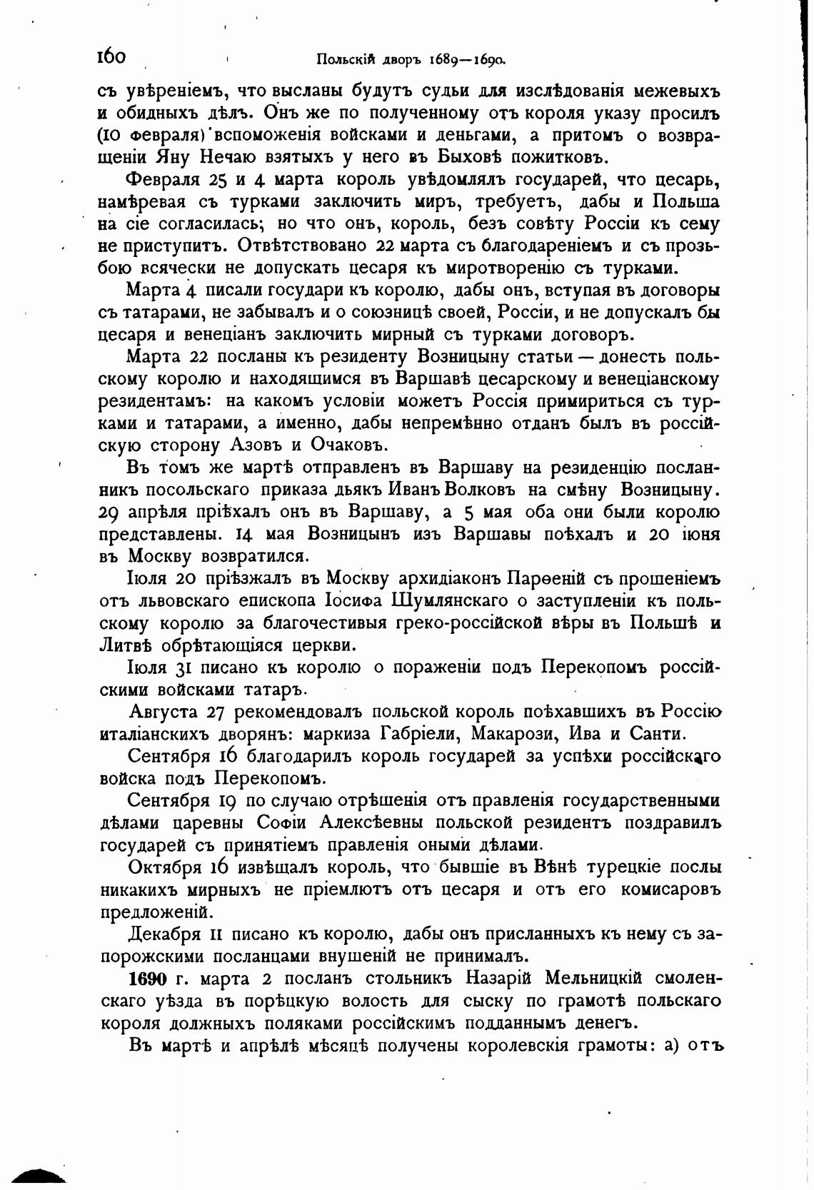 Марта 22 посланы кь резиденту Возницыну статьи — донесть поль-