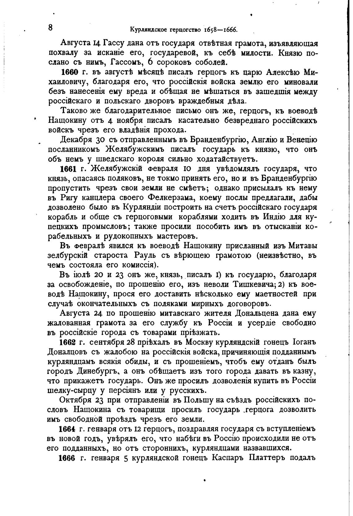 1660 г. въ август± мьсяц% писалъ герцољ кь царю Алекс%ю Ми-
