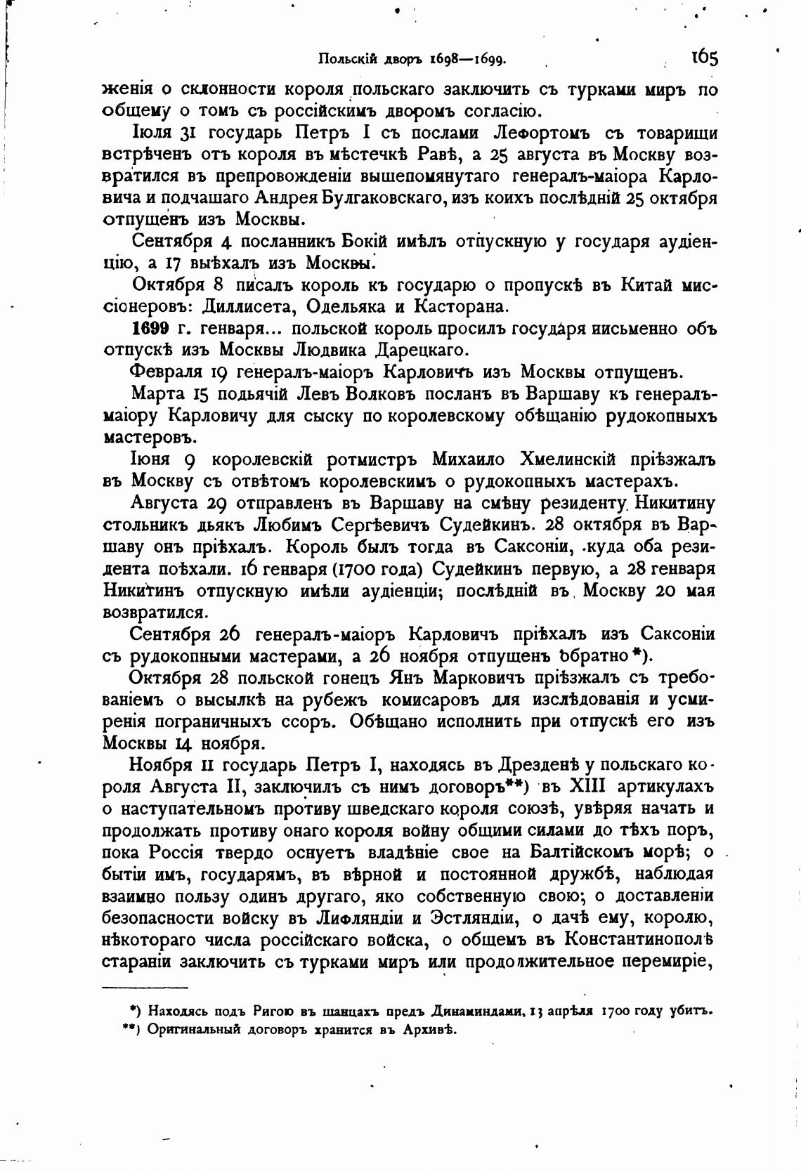 1699 г. генваря... польской король просилъ государя письменно объ