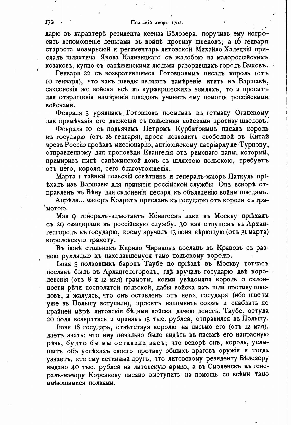Февраля 5 урядникъ Готовцовъ посыланъ кь гетману Огинскому