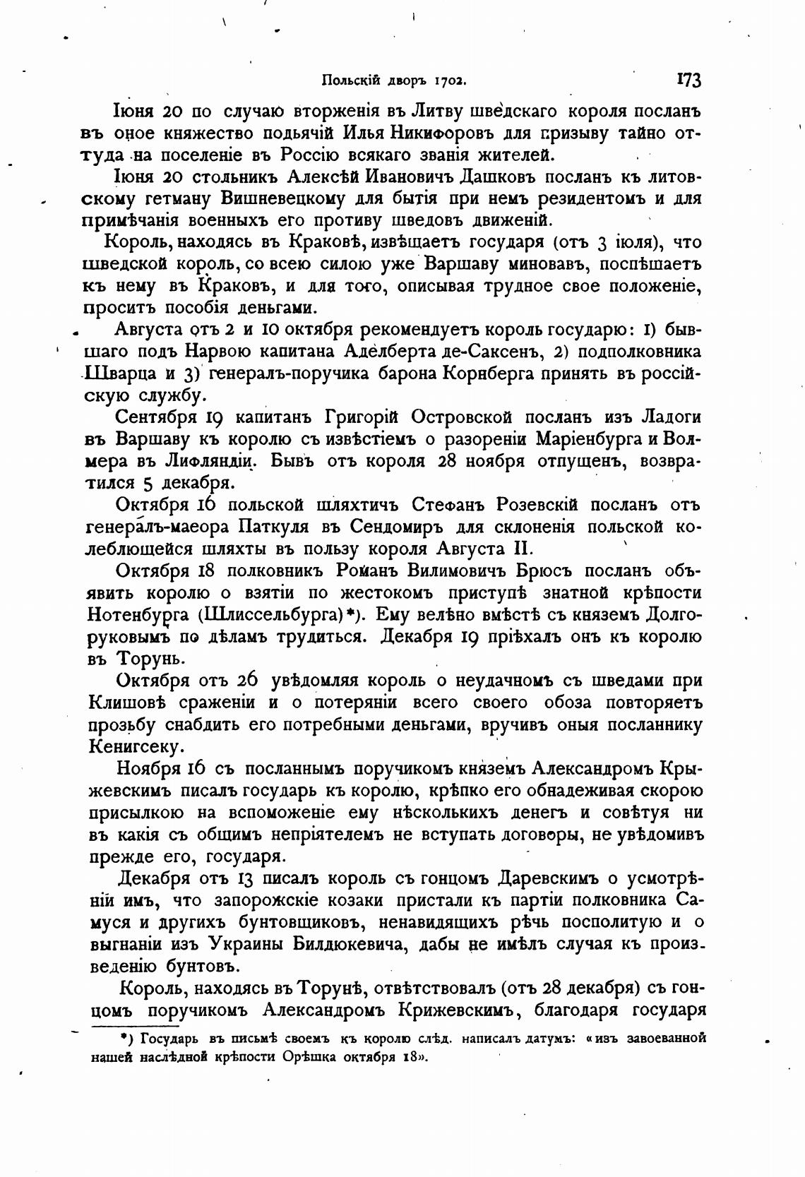 • ) Государь въ письм± своемъ кь королю сл±д. написалъ датумъ: цивъ завоеванной