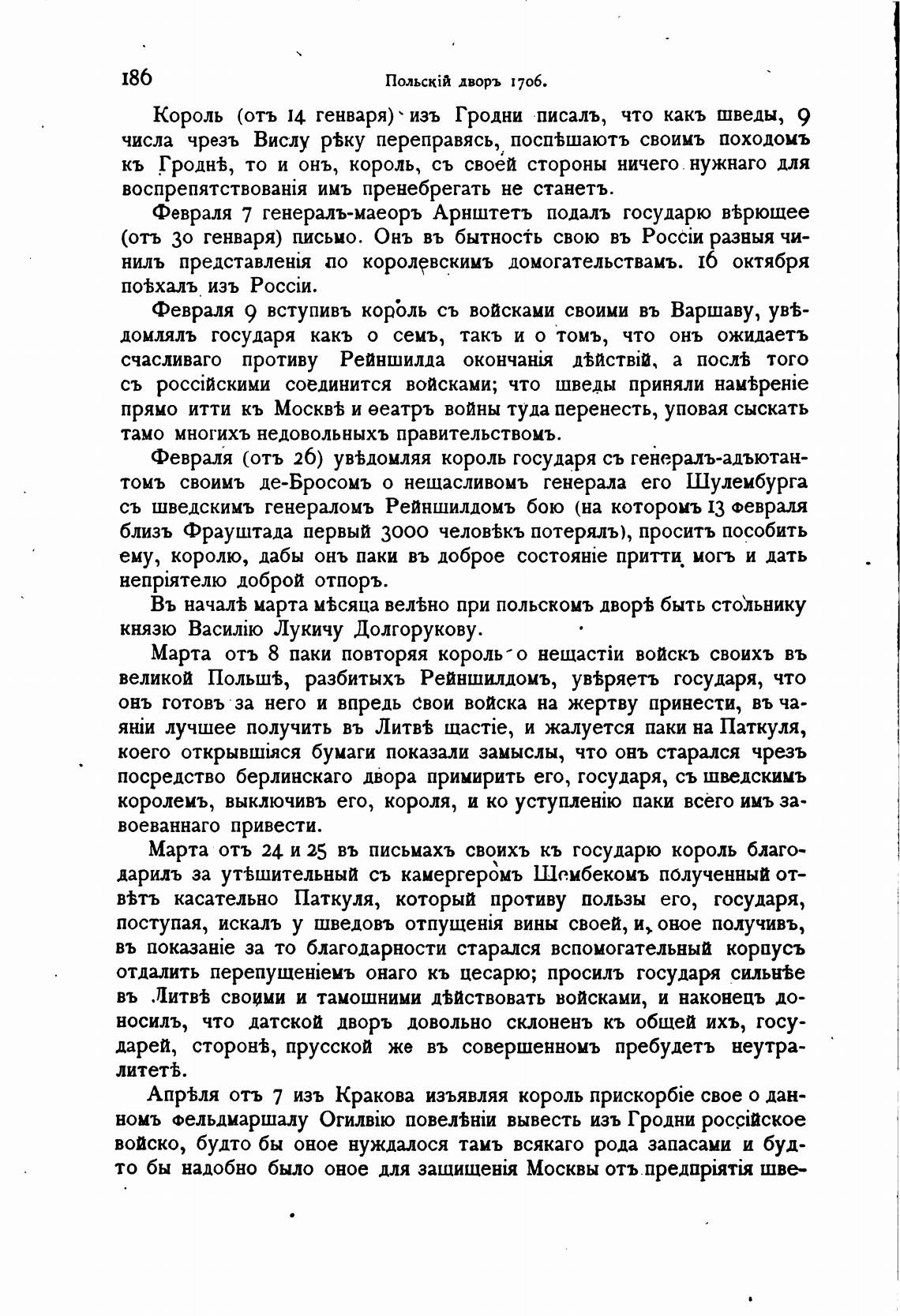 великой Польш%, разбитыхъ Рейншилдомъ, ув%ряетъ государя, что
