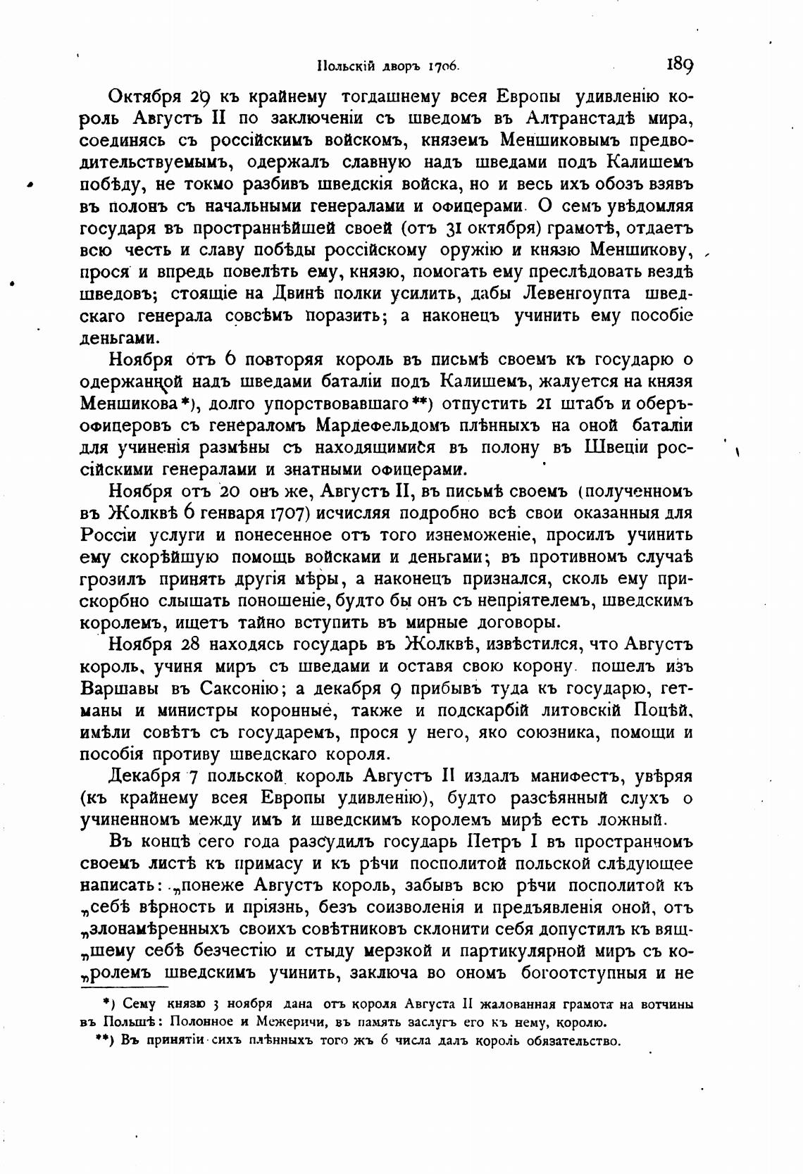 Ноября 28 находясь государь въ Жолкв±, изв±стился, что Августъ