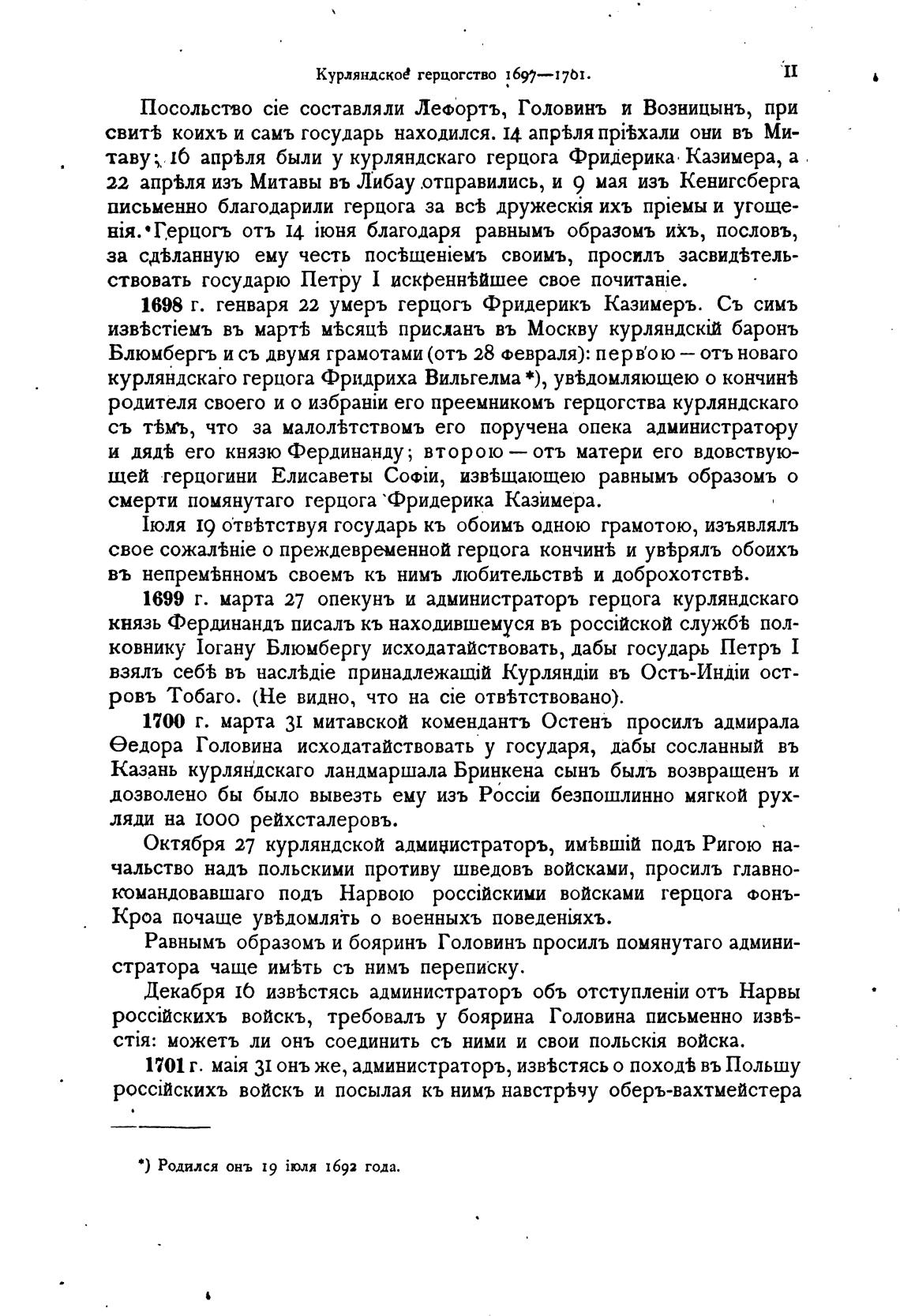 • ) Родился онъ 19 1692 года.